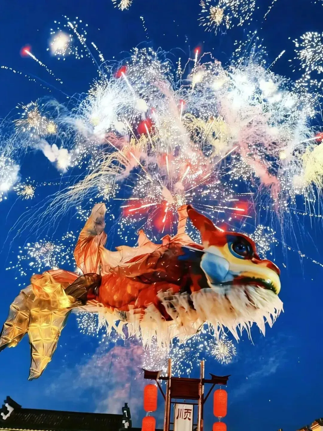 【鳌鱼】(暴雨等恶劣天气取消)夜色如墨,檀干溪的水面被两岸的红灯笼染成暖色。突然,一声锣响划破寂静,晒秋广场上,一条金色的巨兽缓缓升起——龙头鱼身,身披五彩鳞甲,双目如炬。这便是唐模“熬鱼灯会”的主角:鳌鱼。