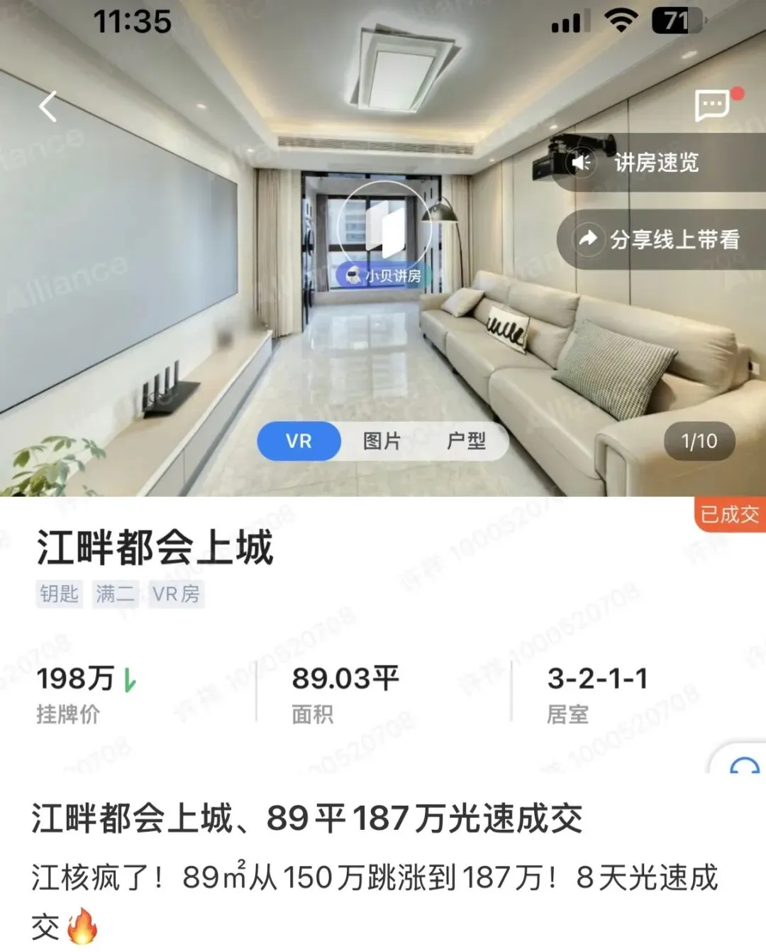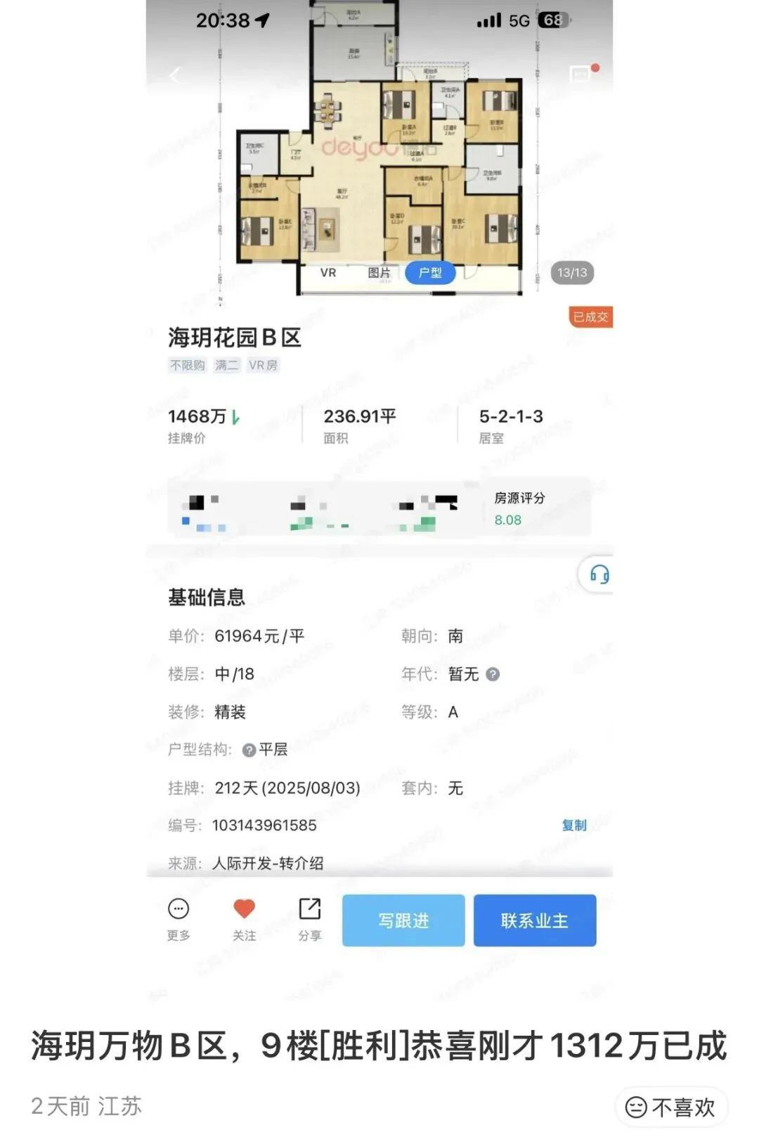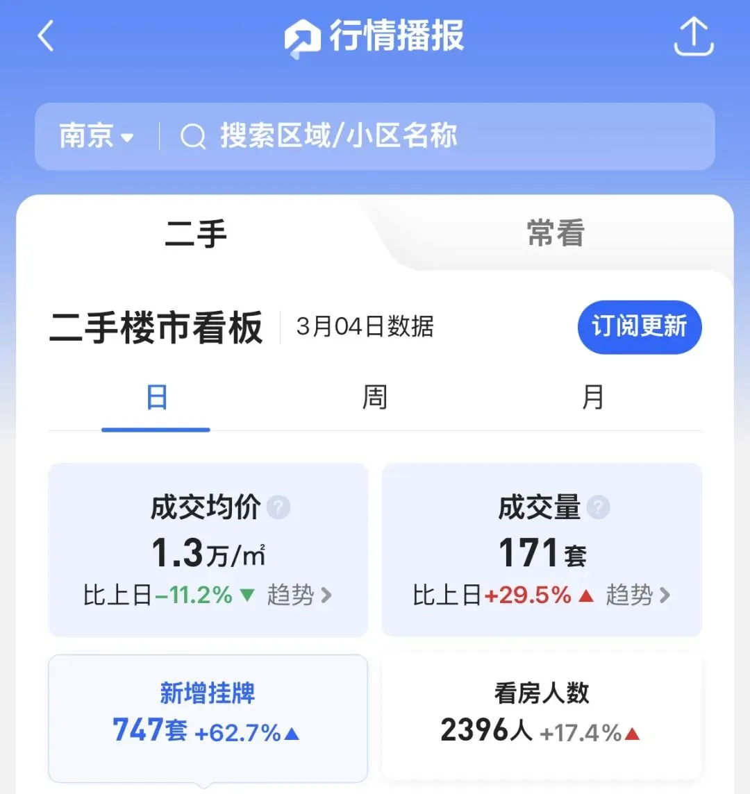 买卖的本质,就是博弈。谁借到的势更多,谁就是赢家。放在房地产,也一样。好好选房数据显示,近1个月、近3月、近6月,无论哪个维度,南京二手房价涨势,都是全国第一。3月4日,南京一天卖了171套二手房,环比上涨29.5%;2396人看房,环比上涨17.4%。具体到成交价层面,南京二手房价约1.3万/㎡,比上日下跌约11.2%,整体趋势还在下探。典型的案例,就是河西中海玥万物这套房。3月2日刚卖出去,236㎡户型,成交总价1312万,折合单价约5.5万/㎡。其实大标的就是这样,行情一好,涨起来凶。当然,行情不好也是,跌起来也比普通住宅狠。此前,南京楼市领跌全国,背后未必是基本面崩了,更多是“情绪性抛盘”——恐慌会传染,抛售会踩踏。当下的二手房市场,成交隐藏、调价隐藏,买卖双方像隔着一层雾,都处于“信息不对称”状态。中介的话,半真半假,大家很容易被裹挟、被PUA。这时候,最难得不是眼光,是定力。能忍住不贱卖,能在别人恐慌贱卖时稳住,其实很重要。当然,也不止是海玥万物。南京还有一些小区迎来企稳回温。如河西南,底已经基本稳住了。海峡城近期成交价都在2万/㎡以上。据悉,目前整个河西南板块,包括海峡城,220-230万已经没什么房源可推了,成交基础线在抬升。还有江核,也有明显回温迹象。好房子很快就卖了,而且价格也都在预期之上。例如江畔都会上城,小区刚卖出一套89㎡户型,最终187万成交,而成交周期只有8天,可谓是光速。中海观江樾,近期的2.3万/㎡成交价,也成功创下小区历史以来的新高。“凌晨2点成交”、“开盘36小时不到,成交10套”、“平平无奇的周三,库库库库卖”……据悉,截至3月3日,雨花台区已发放房票400多张,补贴金额超4000万——这还不包括新滨江片区的额外补贴。政策一出手,风向立刻就变。2月26日晚,江宁区出台青年人才房票2.0政策,宣布发放2000万人才购房补贴。到了3月3日,剩余额度已经不足1万块。5天不到,基本领完。江宁的购买力,太强了。不是说说而已,这些数字背后,是真金白银,实打实的家庭选择定居南京。过去,我们把房子看作是金融产品,涨了就追,跌了就慌。现在,房子正在回归它的本来面目——消费品,兼着学区、地段、品质的承载。这两年,不少开发商抱怨房子太难卖。可另一边,金基屿樾府、金茂樾满云川等未开就火,买金基房、金茂房已经成了买房人的“肌肉记忆”。逻辑很清楚:刚需房确实是消费品,但改善是长期趋势。房子总会落伍,置换不会停。而且有些区域,强者恒强。