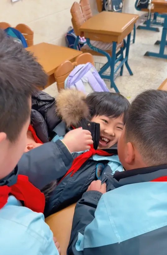 江苏南京9岁男孩小树在2岁多时被诊断为孤独症谱系障碍,3月5日是新学期开学第一天,母亲徐女士用镜头记录下了暖心的一幕:小树第一天有点不适应,试图逃避和同学的接触,但同学们一直围在小树身旁,不给他独处的机会,陪着小树玩耍,小半天过去,小树终于不再紧张,和同学打成一片。徐女士在视频文案中笑称,“新学期开学第一天小树:‘我的心有一道墙’,同学:违章建筑,拆掉!”