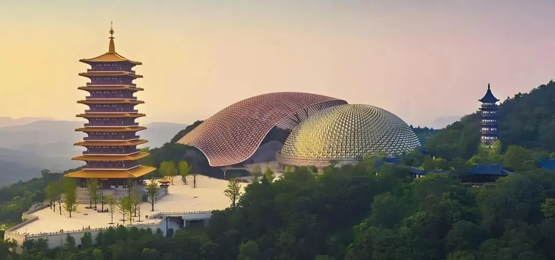 这座深藏于山体的建筑,地上是禅境大观,地下是千佛殿与万佛廊。阳光透过穹顶洒落时,整个空间仿佛被温柔包裹。