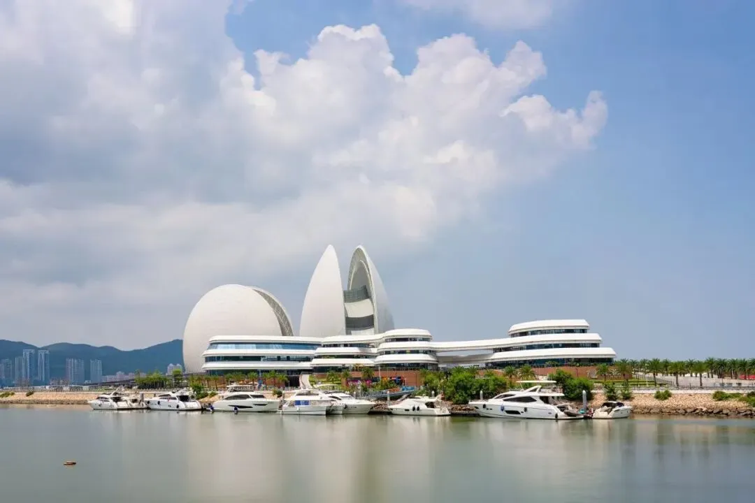 日月贝(外观)(约20分钟):情侣路上的一道亮丽的风景线,是中国唯一建设在海岛上的歌剧院。珠海大剧院设计方案不仅来自“日月贝”这一独特的海洋物种,更对“贝壳”的形象加以提炼,用现代建筑材料和技术进一步表现空间的意义。大贝壳“日贝”高达90米,可容纳近1600人,而小贝壳“月贝”则是一个能容500人座的多功能厅。