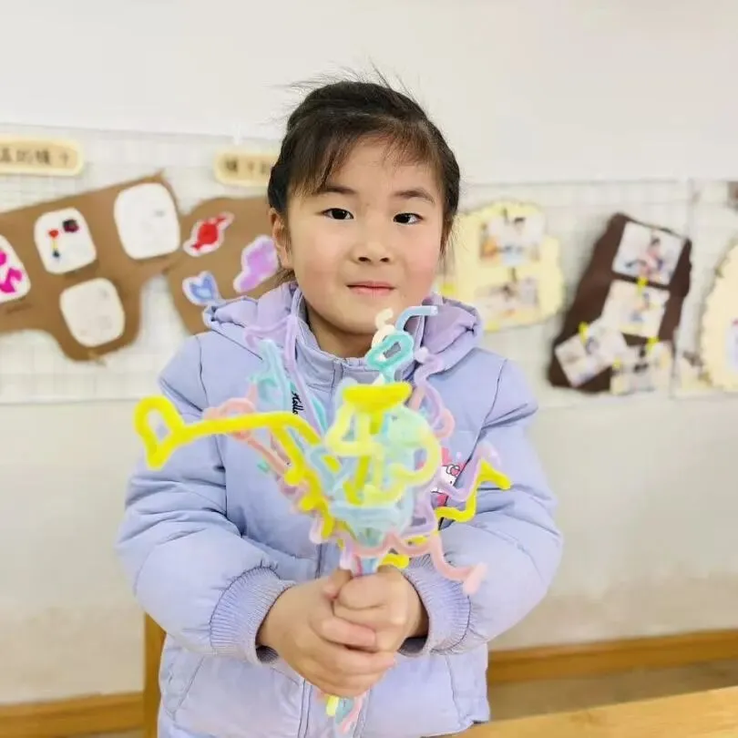 孩子们用灵巧的小手,揉一揉、搓一搓、串一串、画一画。