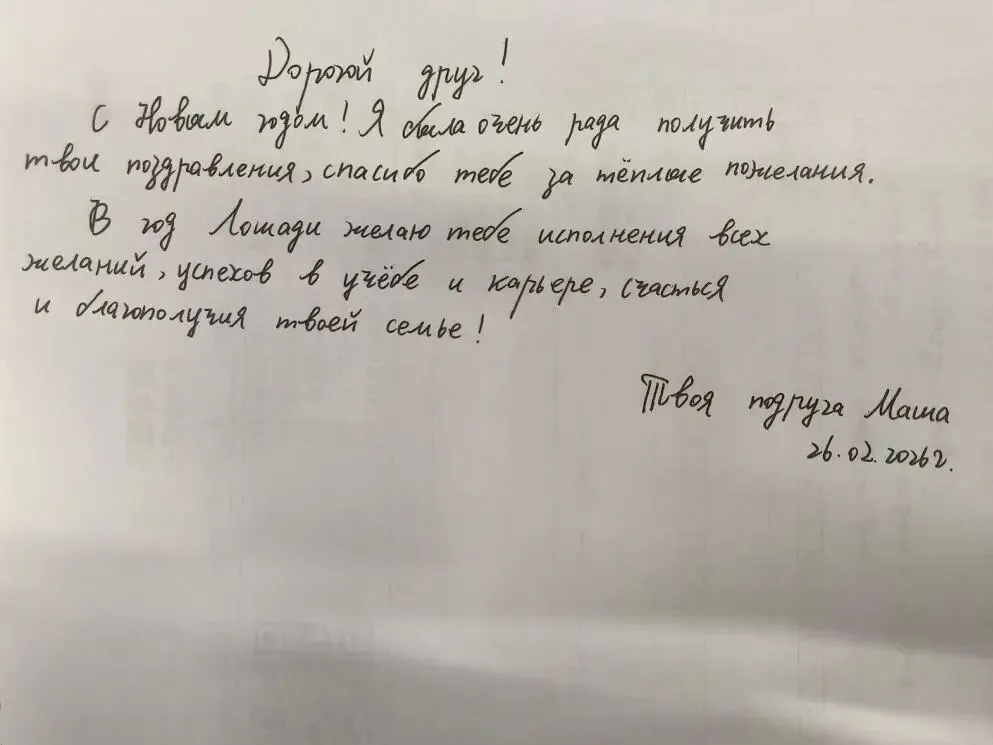 在信中,同学们不仅表达了对收到新年祝福的感谢,更借此时机,向俄罗斯朋友们送上了属于他们的传统节日——谢肉节的衷心祝贺。“祝愿你们和家人在节日里品尝到美味的薄饼,拥有阳光般的心情和春天的温暖!”同学们用刚刚学到的俄语词汇,努力传递着对俄罗斯文化的尊重和对朋友们最质朴的关怀。一封封手写的信件,承载着燕子矶中学学子们同样赤诚的心意,飞向莫斯科。