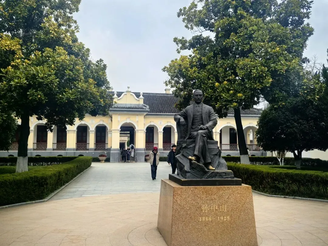从标志性的门楼开始,西式立柱与中式院落在此交汇。穿过门楼,沿中轴线前行,大堂正中“天下为公”匾额高悬,庄重肃穆,仿佛仍能听见百年前的回响。二堂、礼堂、会客室依次铺展,每一处空间都曾见证重要时刻,旧桌椅、老文件、复原场景,把人拉回风云激荡的民国岁月。