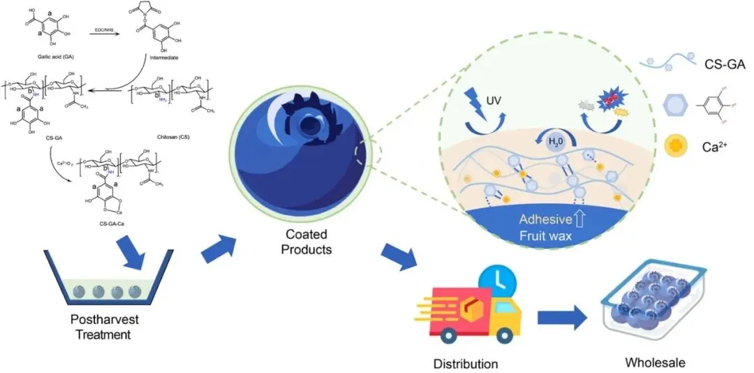 近日,南京农业大学2023级硕士研究生蔡梓航以第一作者,肖红梅教授为通讯作者在《Food Packaging and Shelf Life》期刊上发表题为“Enhancing interfacial adhesion of chitosan coatings on waxy fruit cuticles via a calcium-gallic acid metal-phenolic network”的研究成果。