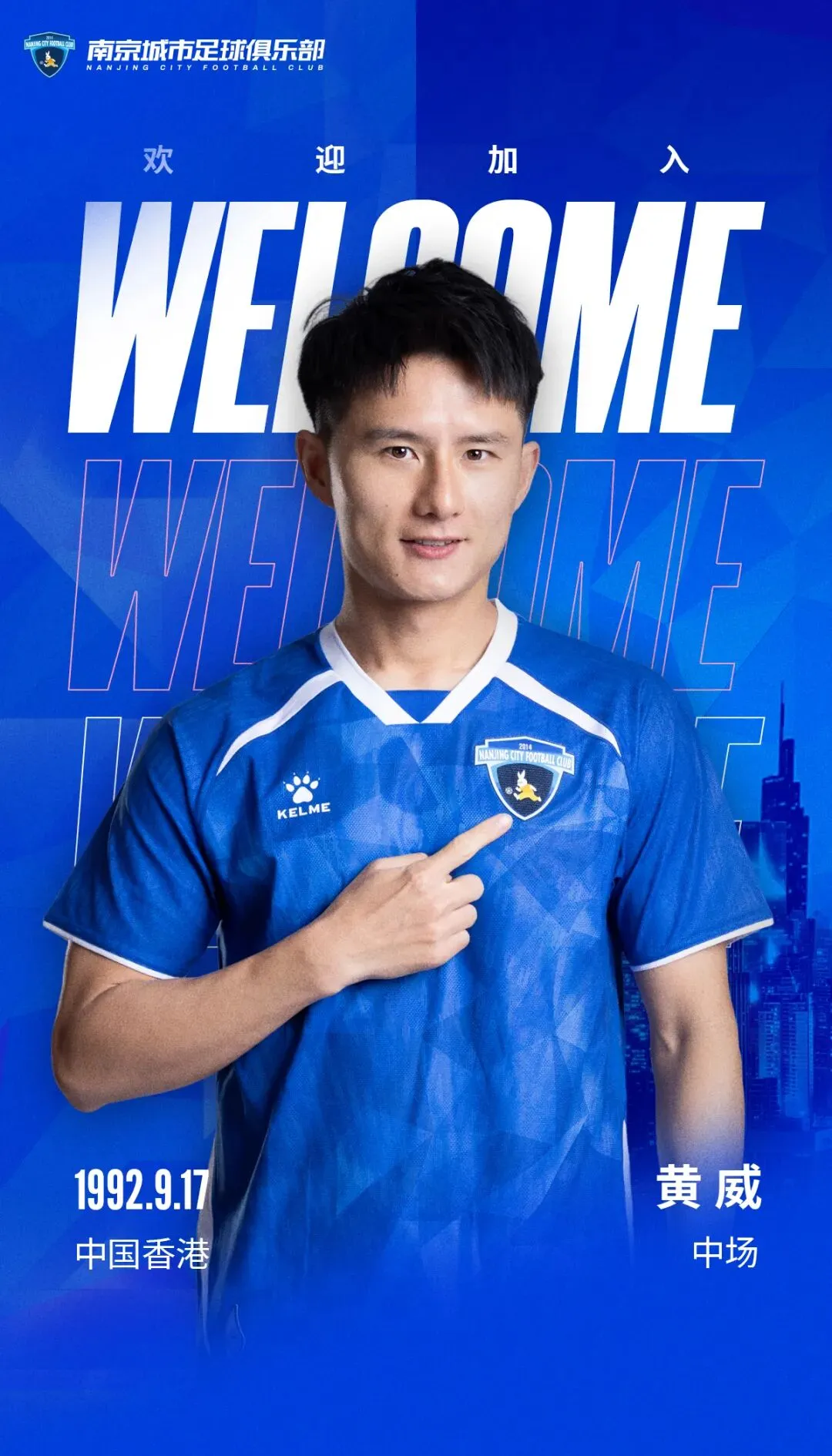 欢迎黄威加入南京城市大家庭,期待黄威快速融入球队,在新赛季贡献出色的发挥,一同迎接新挑战、书写南京城市新篇章!