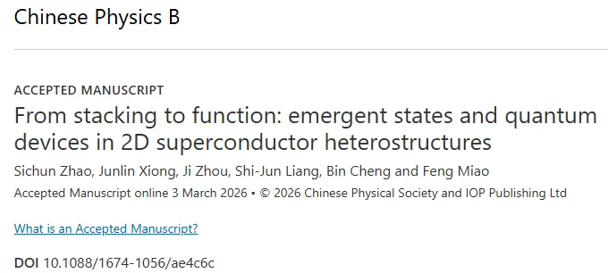 南京大学缪峰教授、南京理工大学程斌教授系统总结了二维超导体与磁体、拓扑材料、超导体构建的范德华异质结(S/M、S/T、S/S)的研究进展,深入解析了近邻效应、对称性破缺等核心机制,重点阐述了自旋三重态超导、拓扑超导、非互易输运等新兴量子态,及其在量子传感、量子计算等领域的应用潜力。相关工作以“From stacking to function: emergent states and quantum devices in 2D superconductor heterostructures”为题发表在Chinese Physics B。