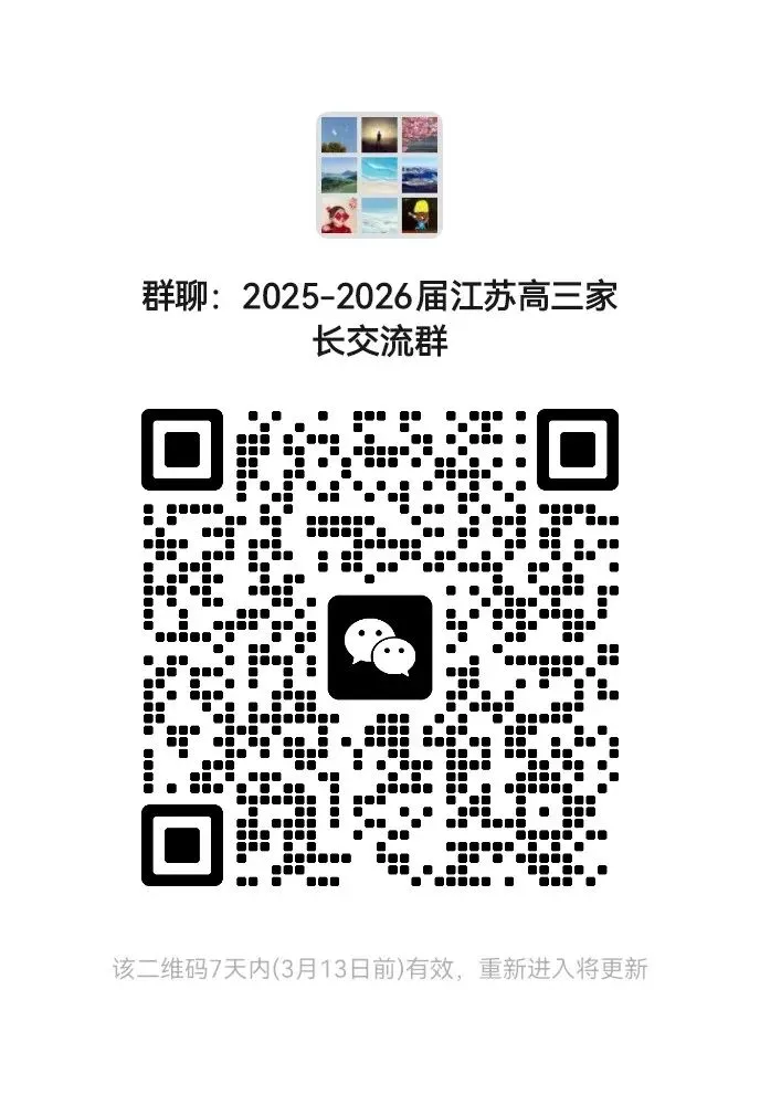 更多高考资讯可进“2025—2026届江苏高三家长群”了解,群内会第一时间发布江苏省最新高考信息,并有专业老师讲解,及时答疑解惑,有问必答,帮您理清各项政策细节,把握一切机会。非诚勿扰。