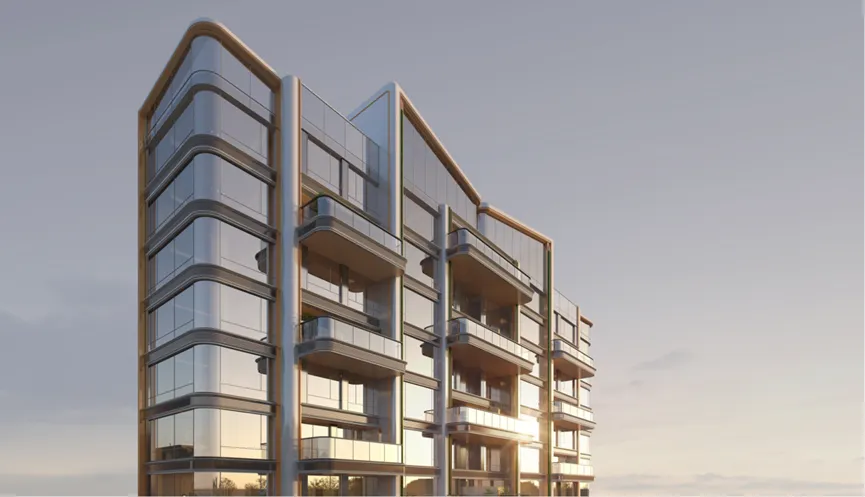 效果图看,玻璃幕墙为主,超高窗墙比,流线型立面,自下而上三段式表达,在基座与顶部以拱券式造型凸显视觉焦点和艺术审美,像是纽约曼哈顿CBD的顶级云端豪宅范式。