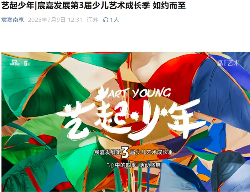 嘉佰道·南京去年亮相,启动宣传以来,一直贯彻它的艺术豪宅路线。落地南京的事件,是全国联动的艺起少年活动。虽然未能基于南京针对性诠释。