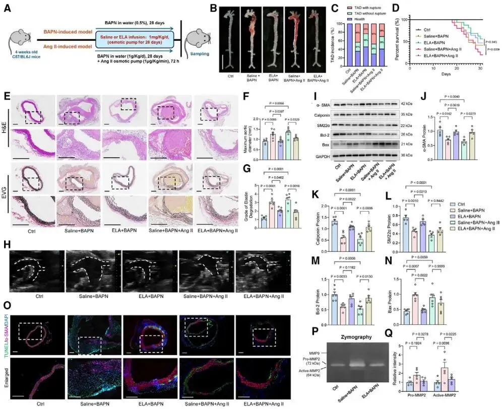 图1. ELA慢性灌注抑制小鼠TAD进展并维持VSMC稳态