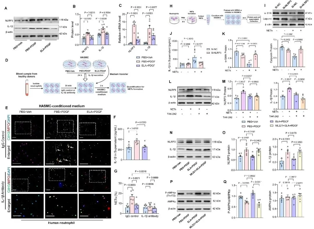 图4. ELA抑制NLRP3/IL-1β介导的VSMC和中性粒细胞的细胞间通讯