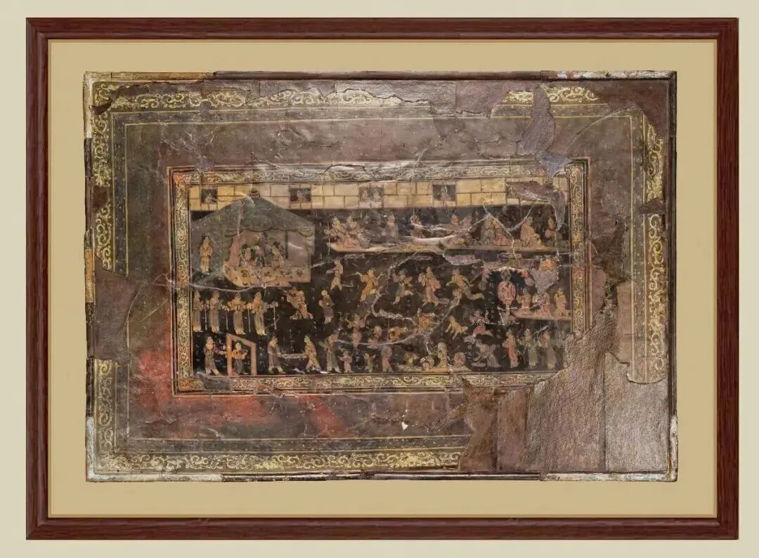 “宫闱宴乐图”漆案正面图