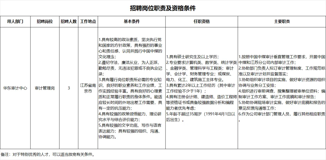 华东审计中心审计管理岗3人。