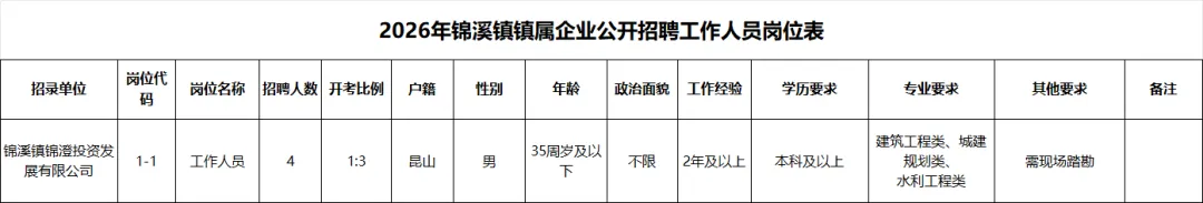 10.具备《2026年锦溪镇镇属企业公开招聘工作人员岗位表》中报考岗位要求的其他资格条件(《2026年锦溪镇镇属企业公开招聘工作人员岗位表》中对招聘岗位基本条件和其他资格条件另有规定的从其规定)。