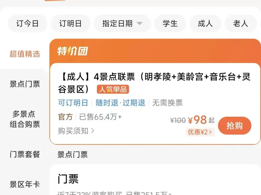 - 联票(最划算):100元=明孝陵+美龄宫+音乐台+灵谷寺,比单买省35元,两天有效。