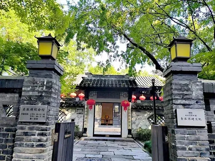 门很小,说明游人不多。门右边的墙墩上,挂着一个牌子,“秦淮河研究院”。门左边也挂着一个牌子,“吴敬梓纪念馆”,