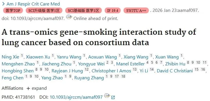 本研究开展首个肺癌跨组学基因 - 吸烟互作研究,整合多队列基因数据与多维度分子 QTL 数据,鉴定出 8 个调控吸烟致肺癌风险的关键生物标志物,构建分子修饰评分 MMS 可有效分层吸烟者肺癌风险,还搭建了免费在线平台 LungCancer-xWAS-GxE,为肺癌精准防控提供新工具与思路。