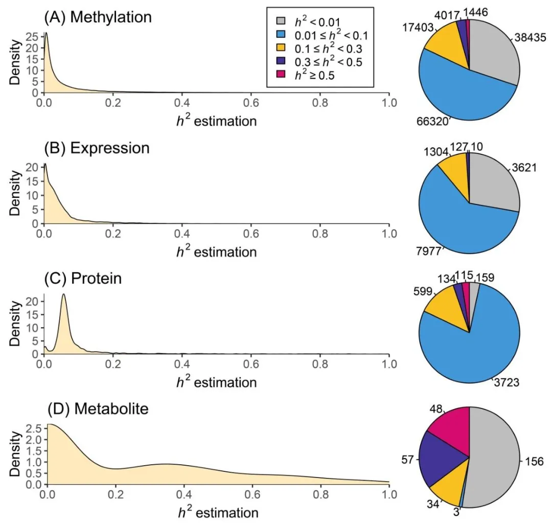 图 2 基于 LDpred2 方法估算的分子生物标志物遗传力分布