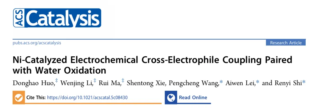 西安交大师仁义/武大雷爱文/南京理工王鹏程ACS Catal.:镍催化通过水氧化的电化学交叉亲电偶联反应