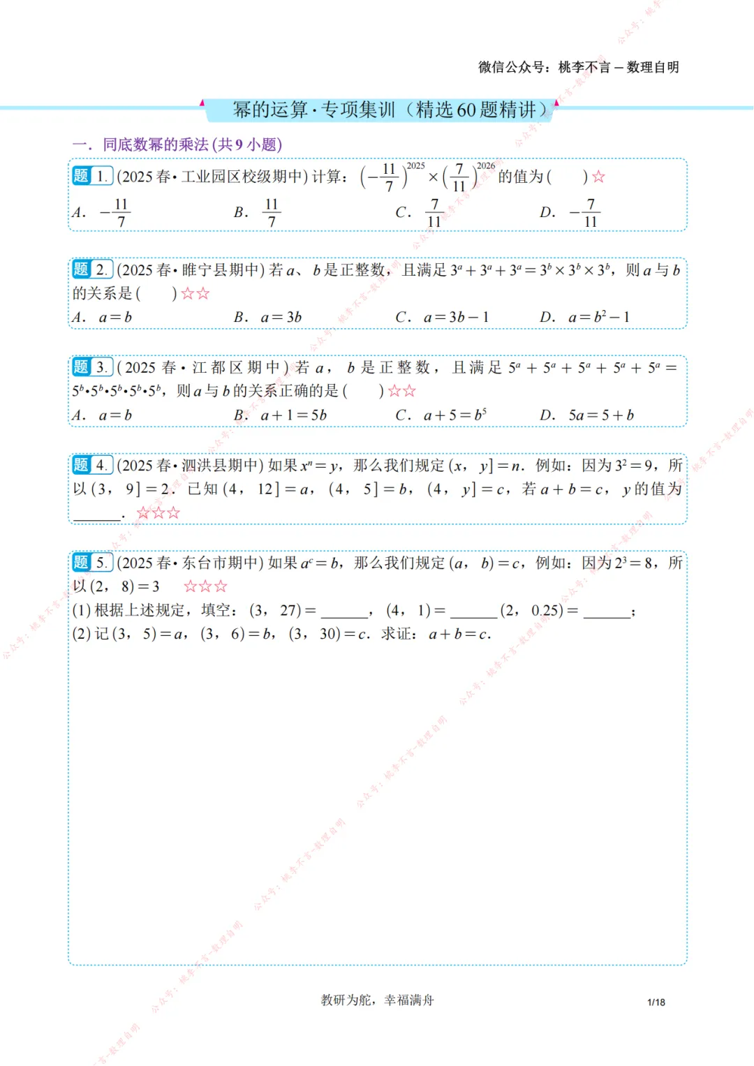 >【南京桃李不言】七下数学-幂的运算专项集训精选60题+精练48题