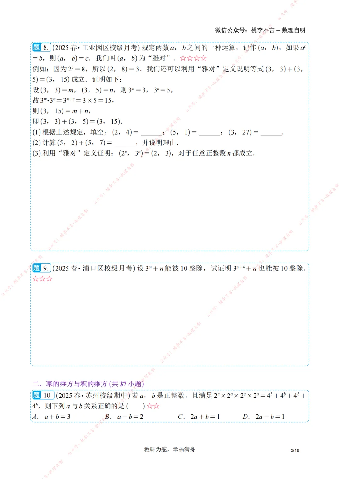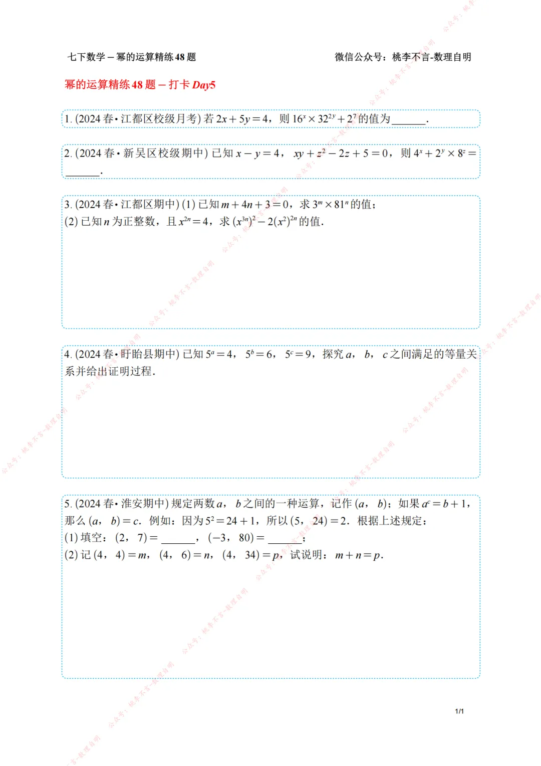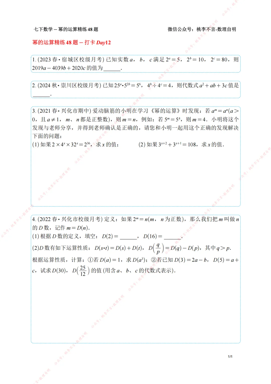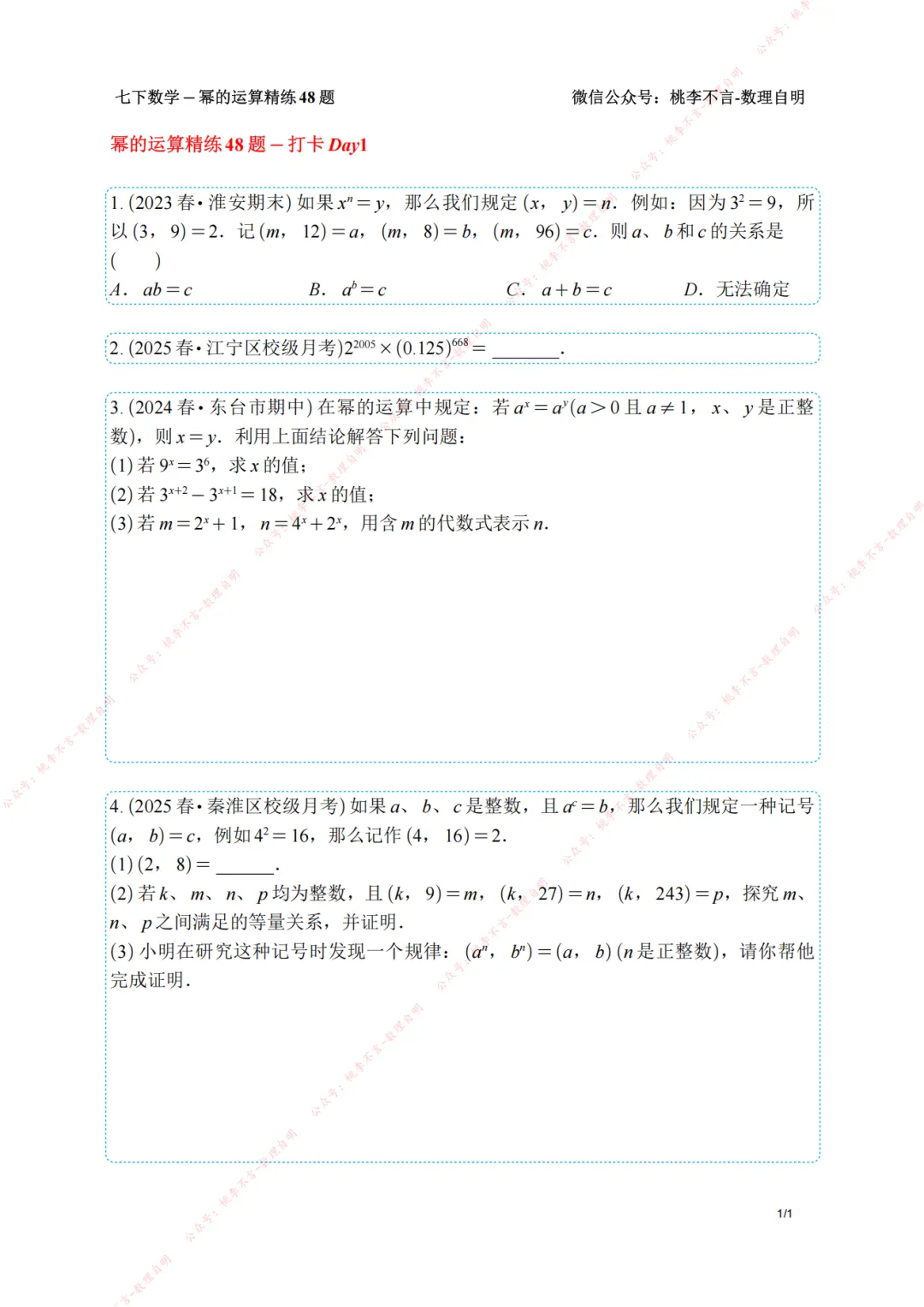 【南京桃李不言】七下数学-幂的运算专项集训精选60题+精练48题