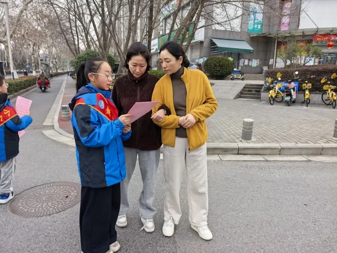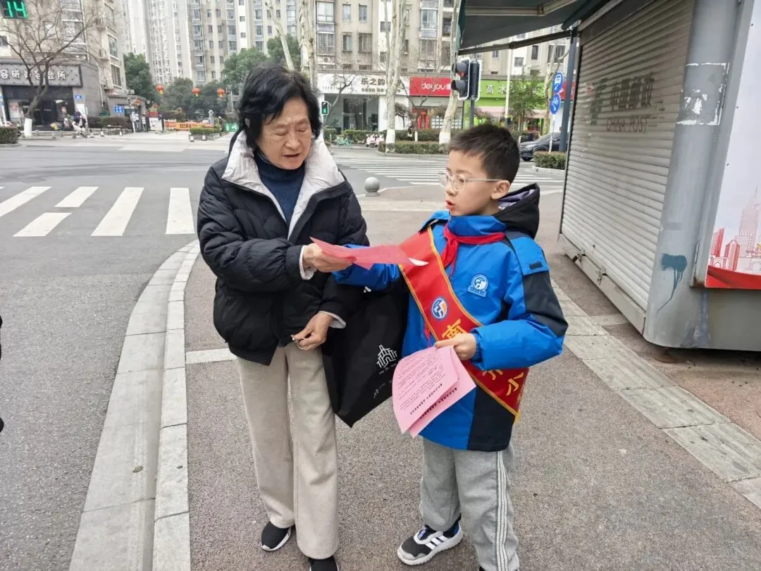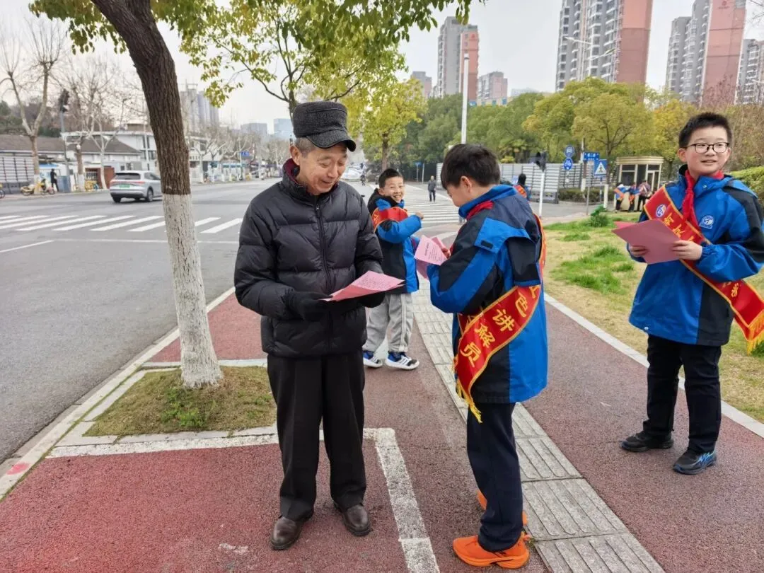 3月5日下午,南京市小行小学的学生志愿者们化身“交通安全小宣传员”,在老师的带领下走进周边社区,开启了志愿服务实践之旅。活动现场,小志愿者们分工明确、热情饱满,手持宣传资料,用稚嫩清晰的声音向过往居民宣讲斑马线通行礼仪、骑行安全等实用知识。