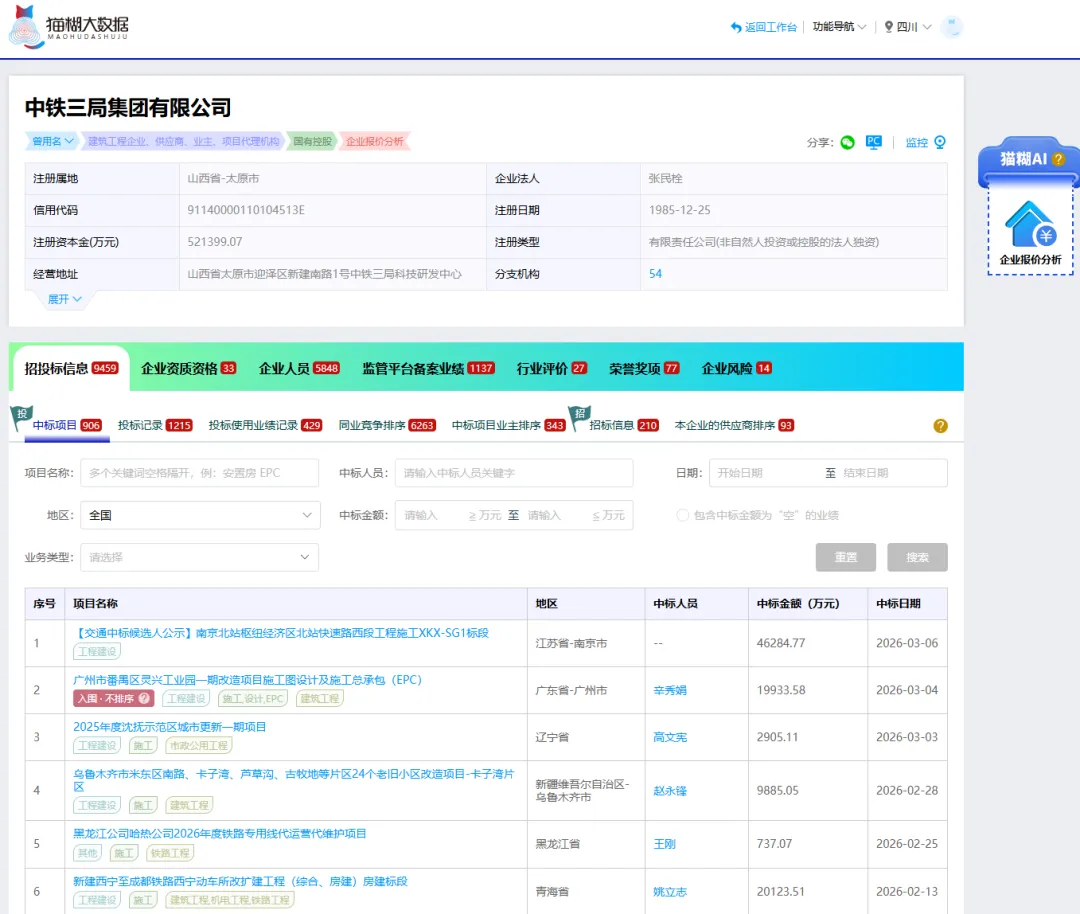 ”来查看该企业所有的中标项目列表。