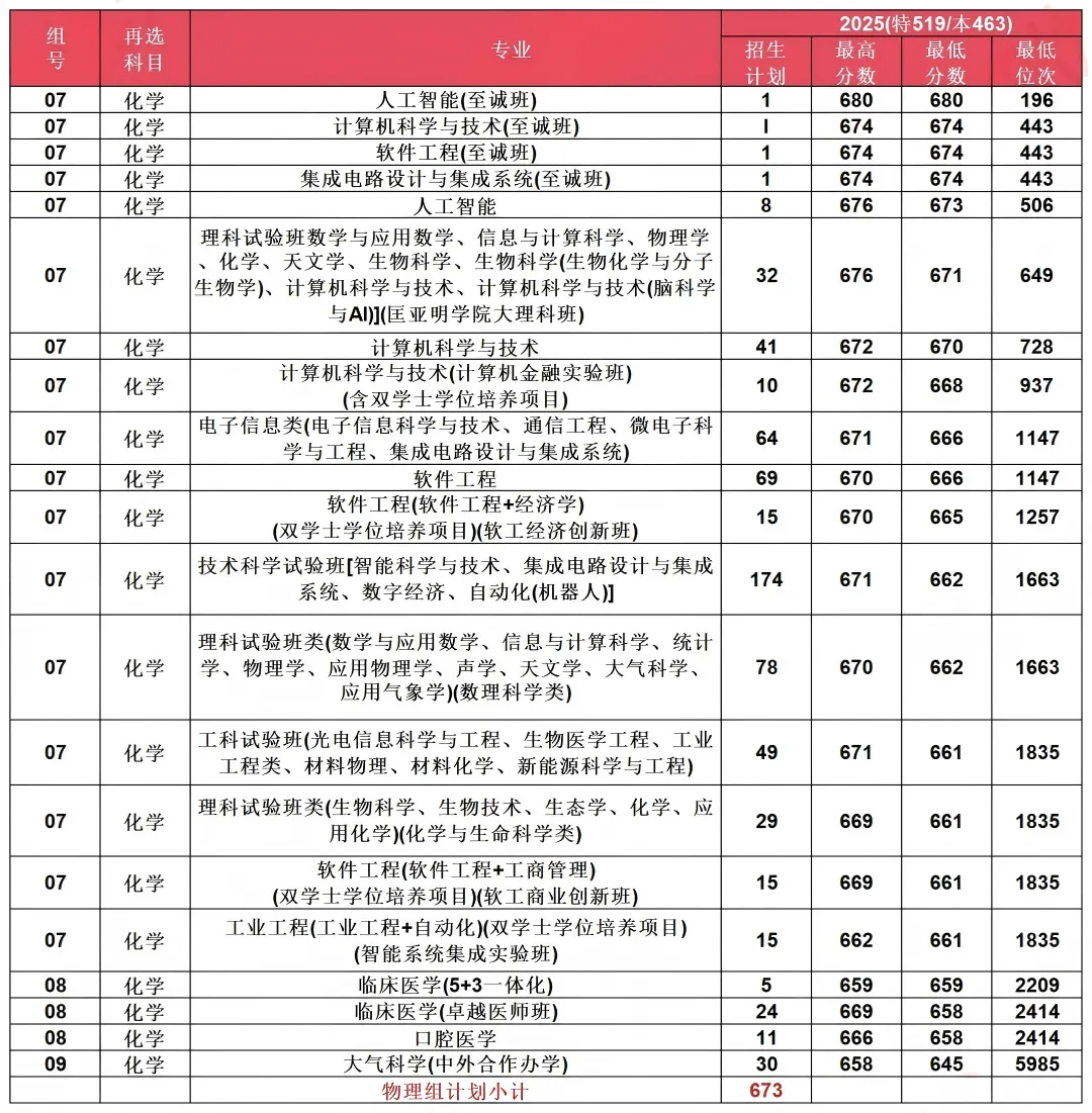物理类考生:前1500名有望录取优势专业;前6000名可考虑中外合作或冷门专业。