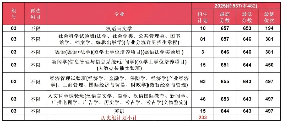 历史类考生:稳定在400名以内,可冲刺南大;省排500名左右需谨慎选择专业。