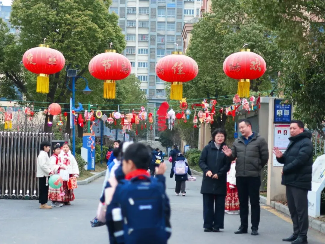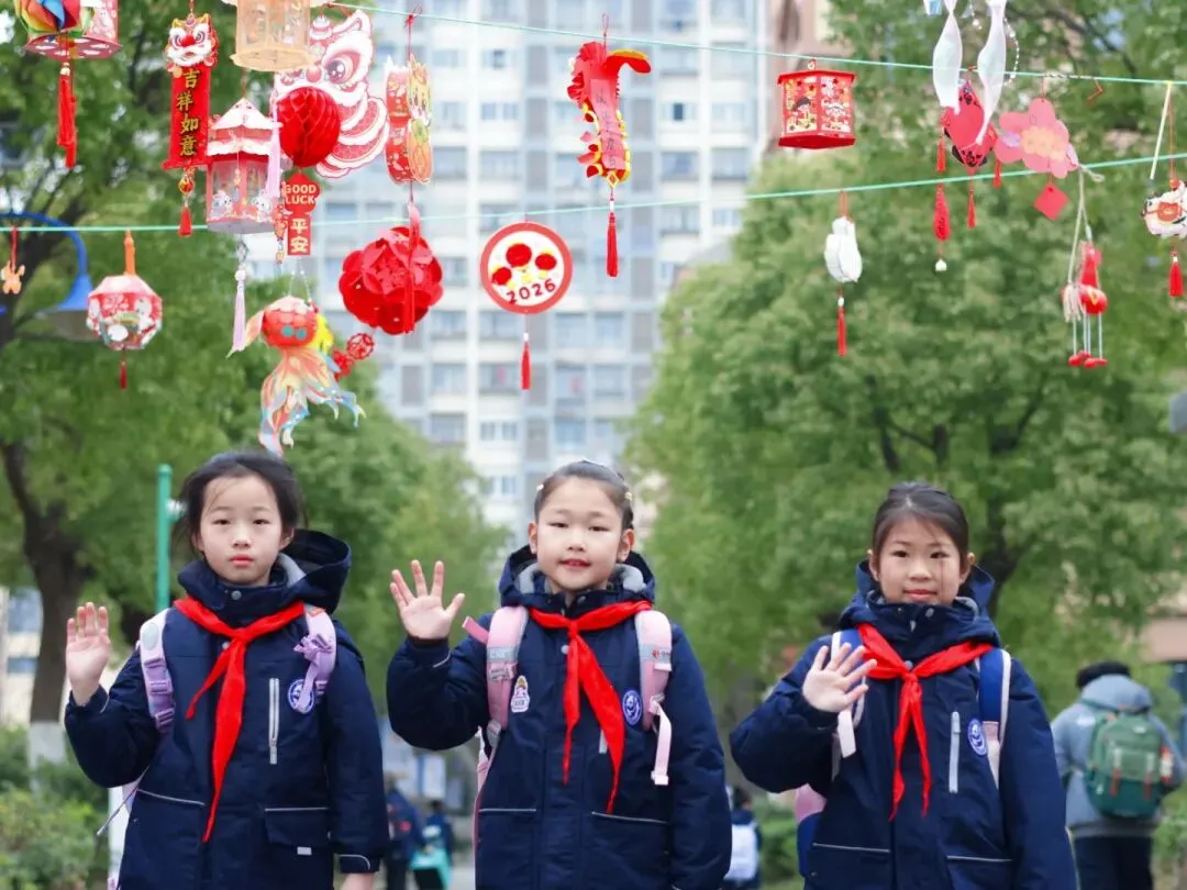 春光初绽,寻美而行。南京市佳营小学(南京市五老村小学分校)的校园门口,红红的小灯笼在校门口悬挂,年味满满。