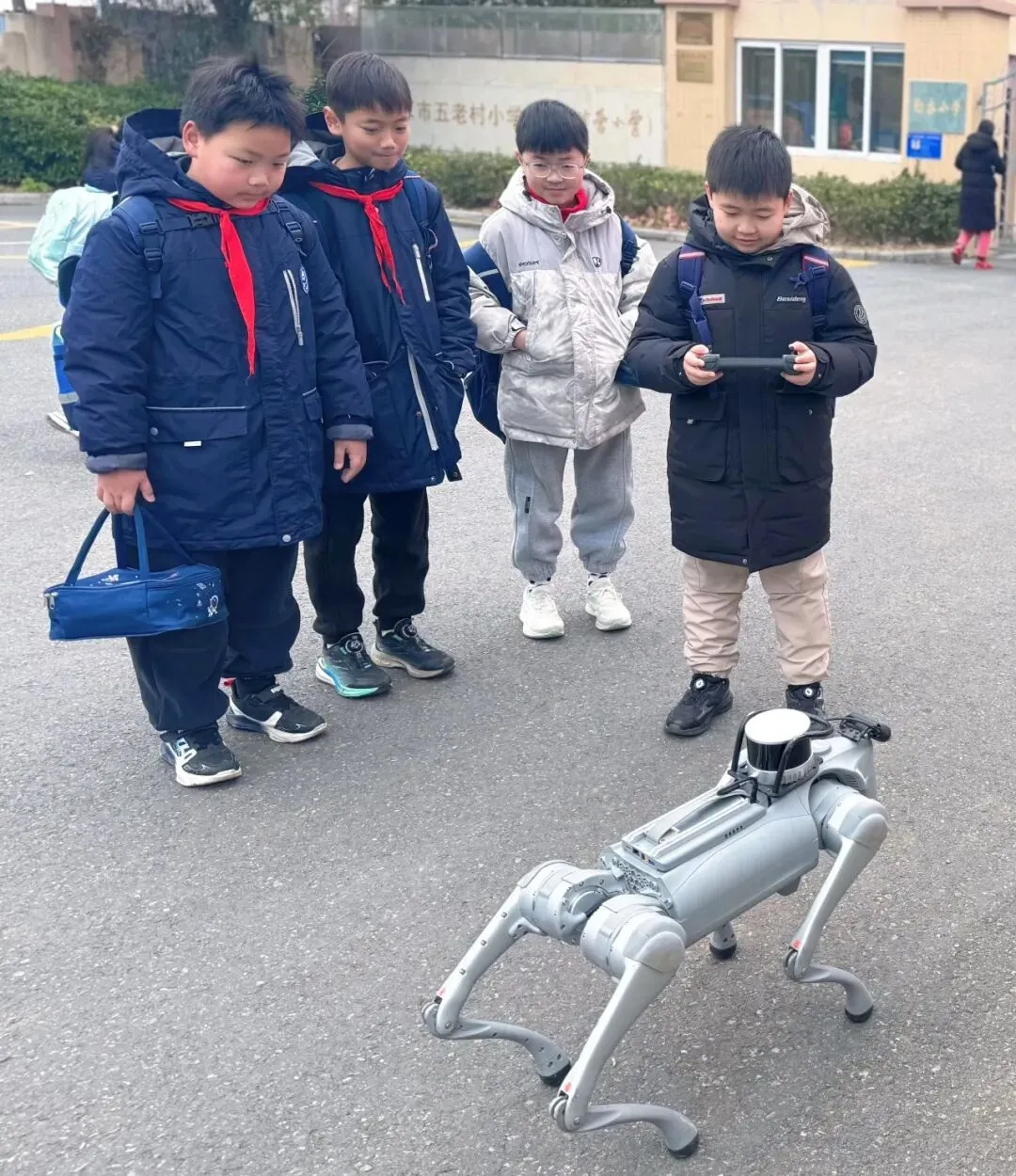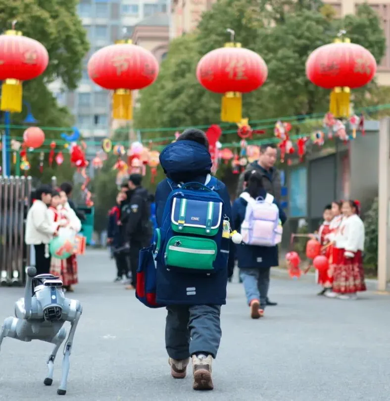 “小福娃”在校门口向师生问好,机器狗与机器人“宾果”也齐齐上阵,带来满满的科技感与新学期的喜悦。踏着晨光,孩子们背着书包,步履轻快地走进校园,一张张笑脸为新学期拉开了温暖的序幕。