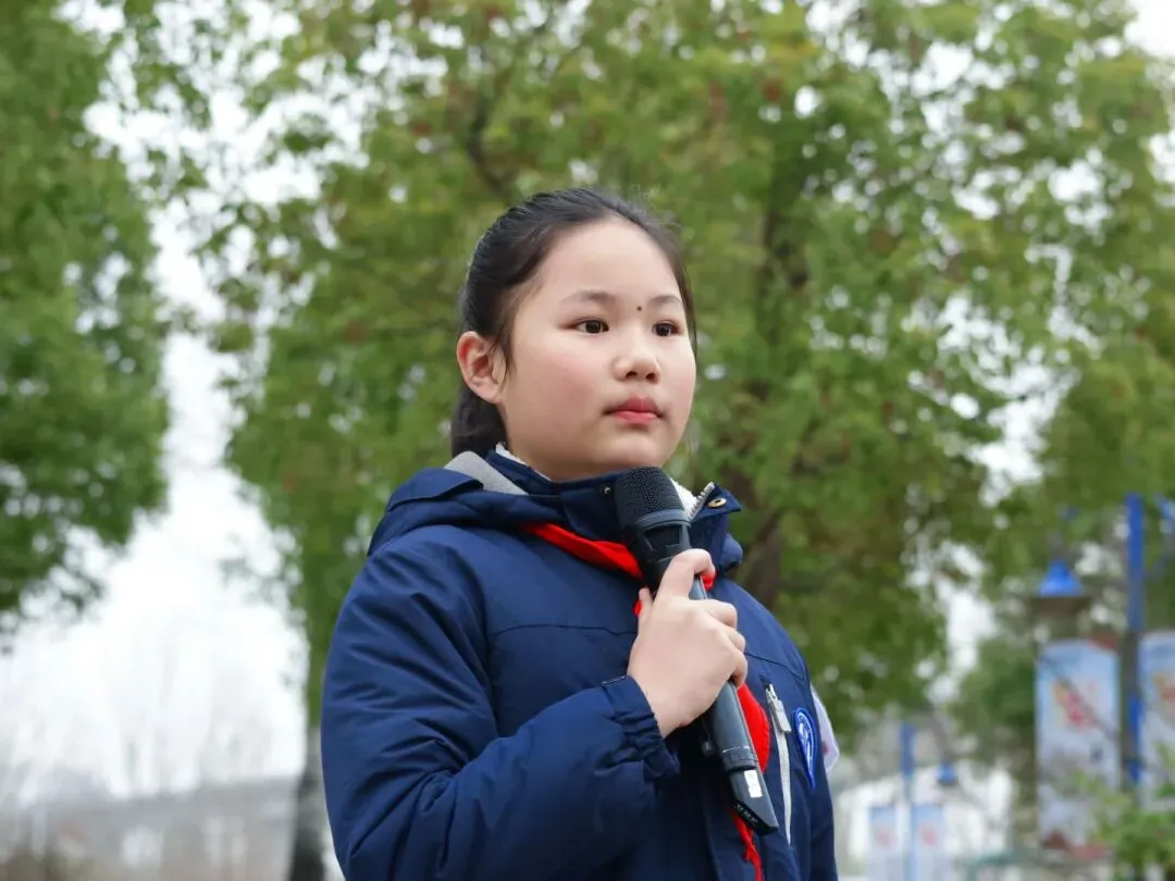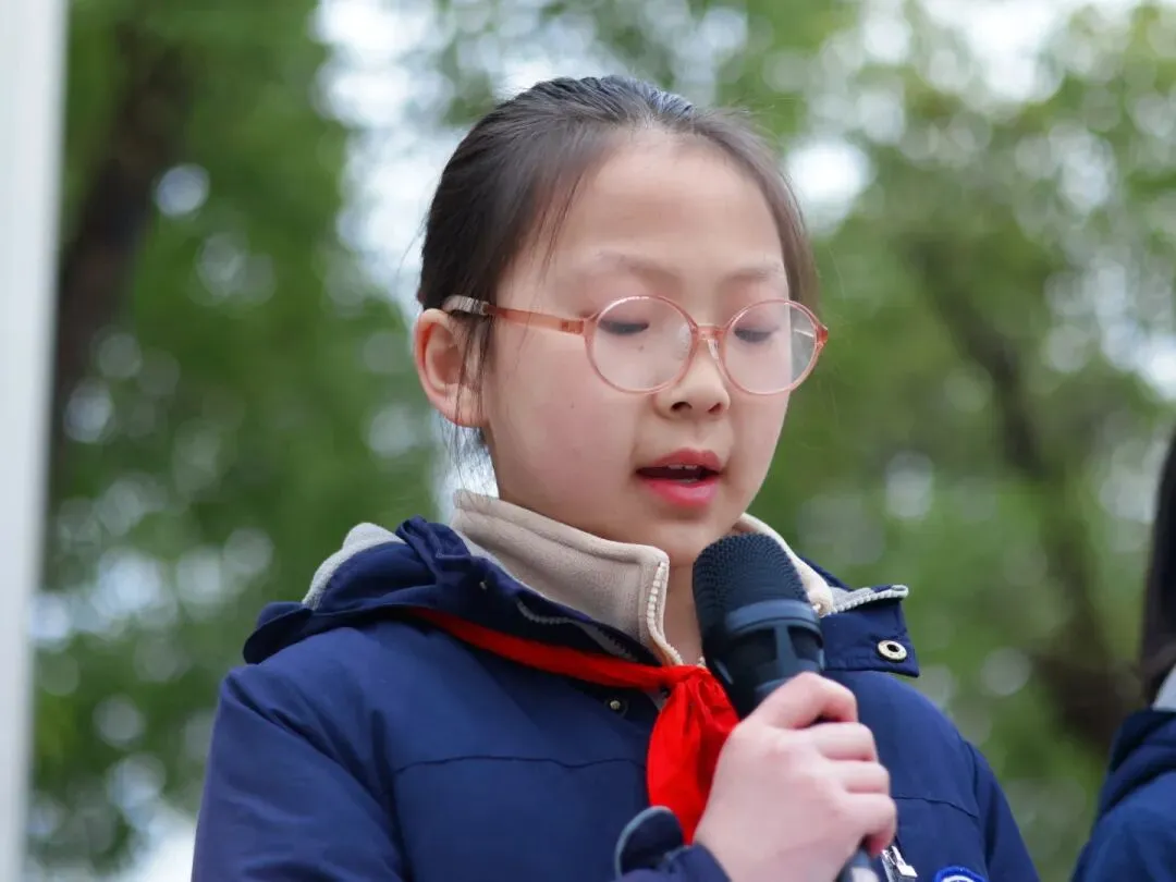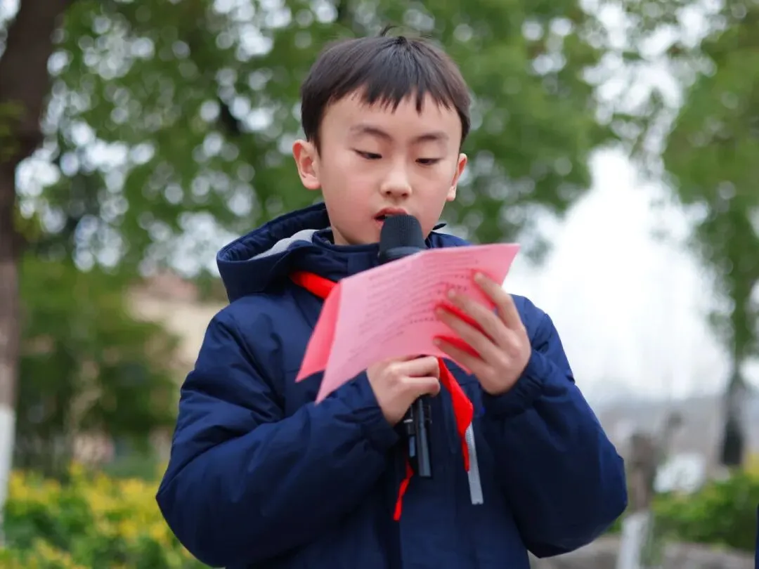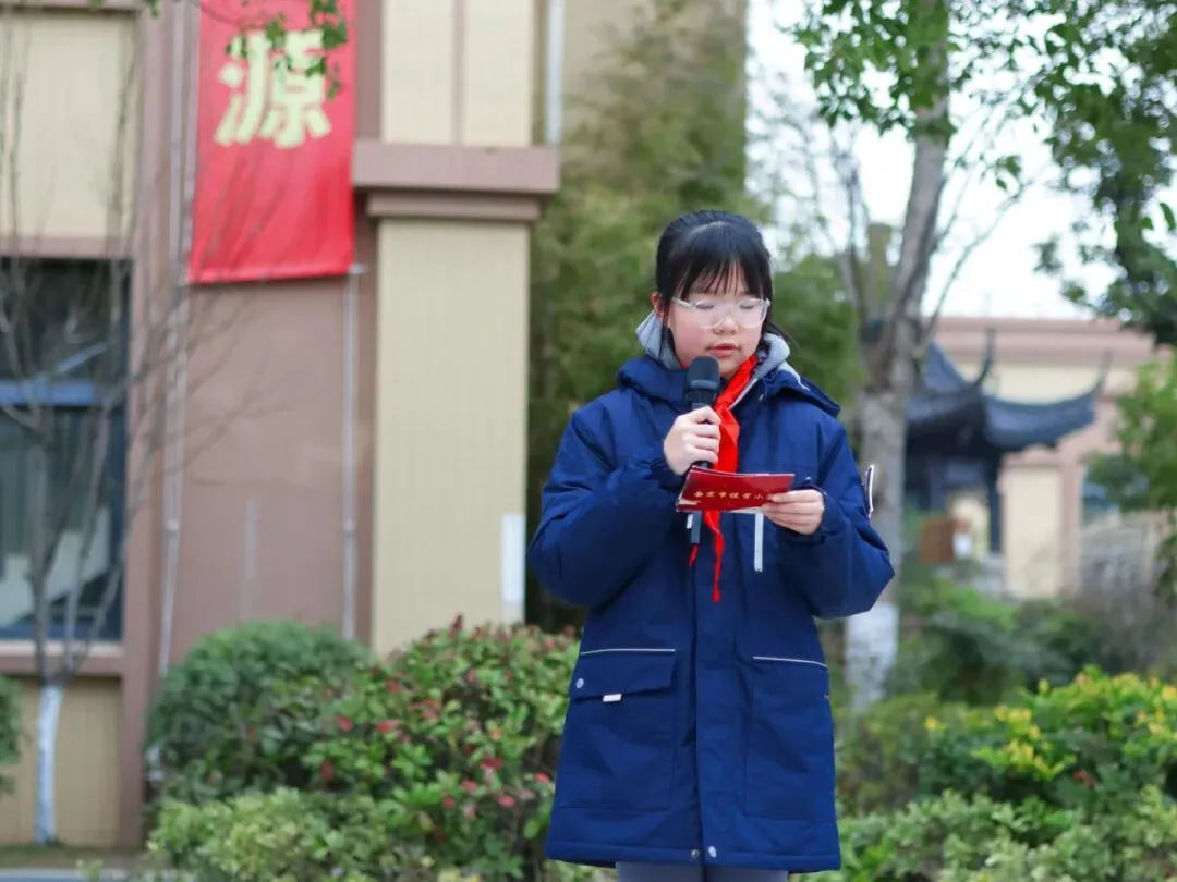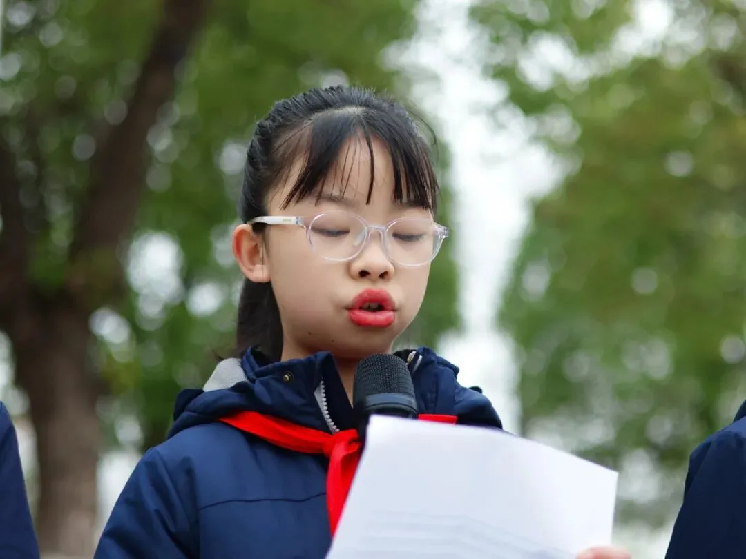 “我们是校园的小主人,是会发光的萤火虫。”在爱校倡议环节,主持人带领全体同学宣读《萤火寻美·爱校成长倡议书》。从发现美、参与美,到守护美、创造美,五条倡议如五束光,指引孩子们在新学期中文明成长、勇敢前行。