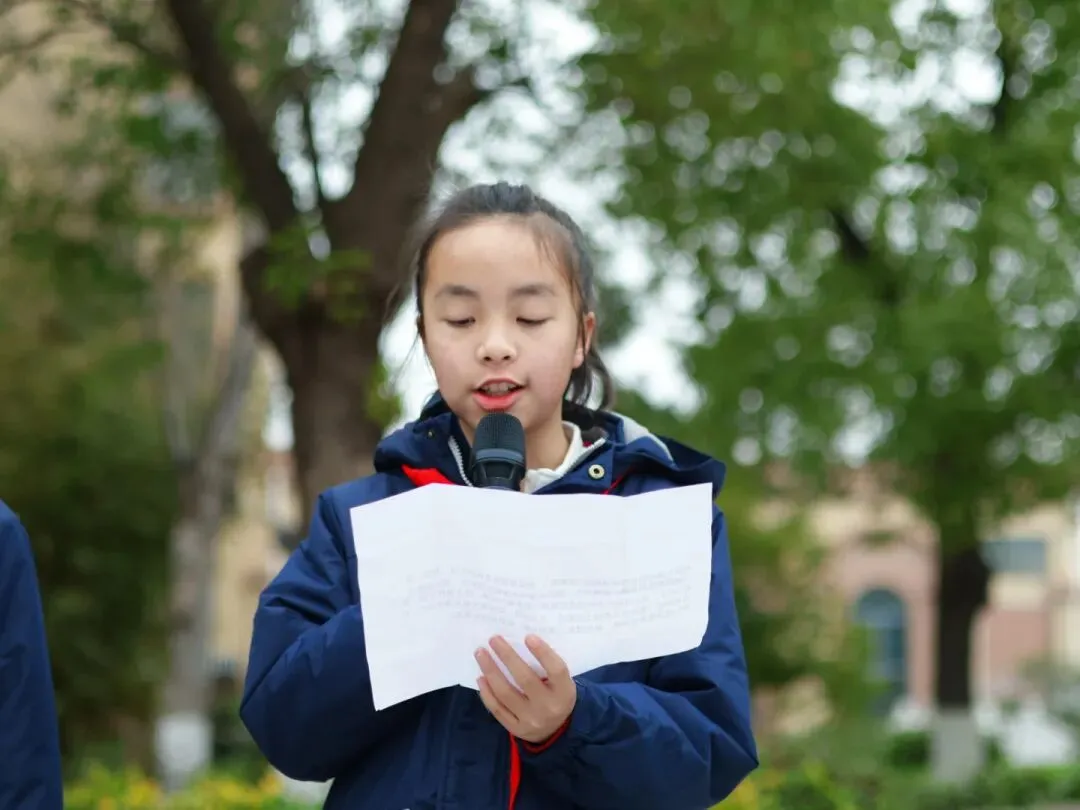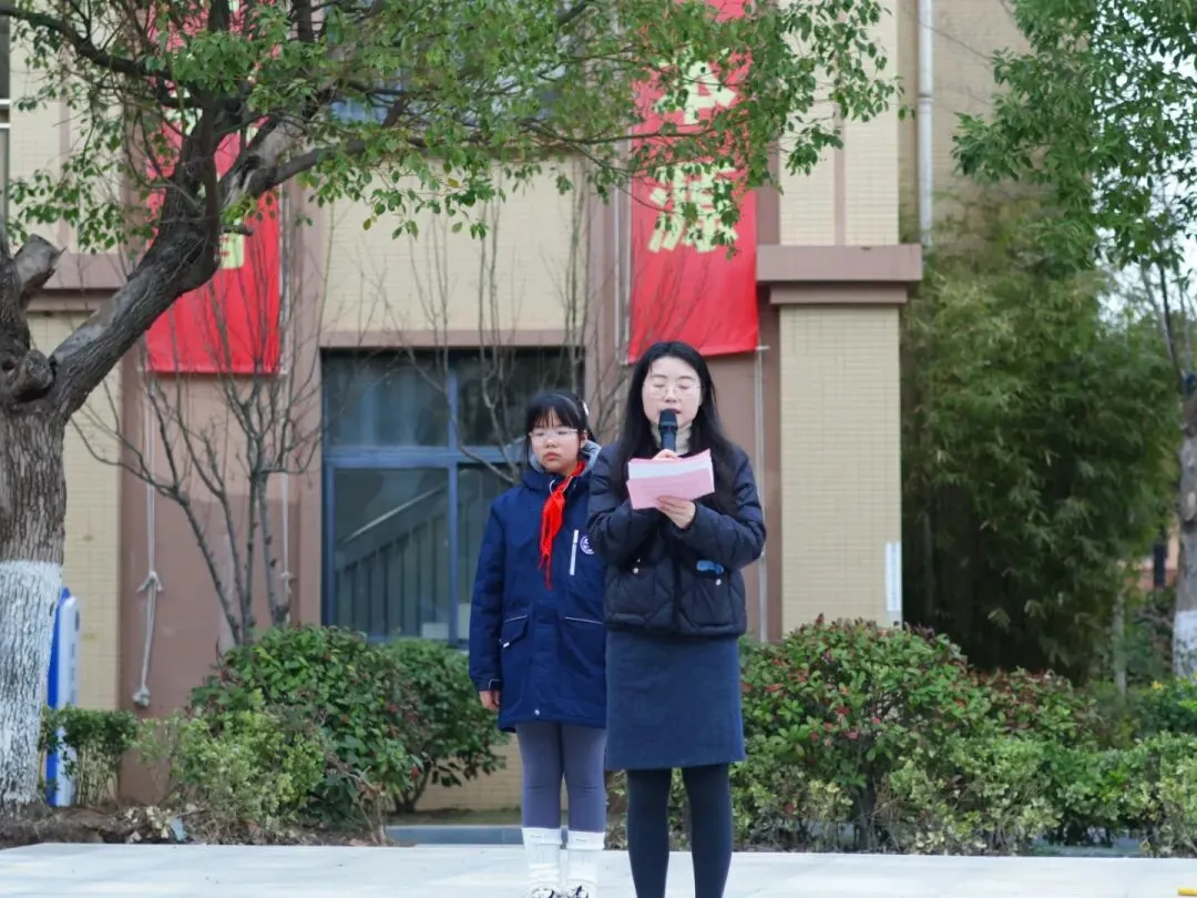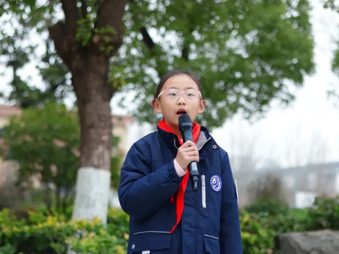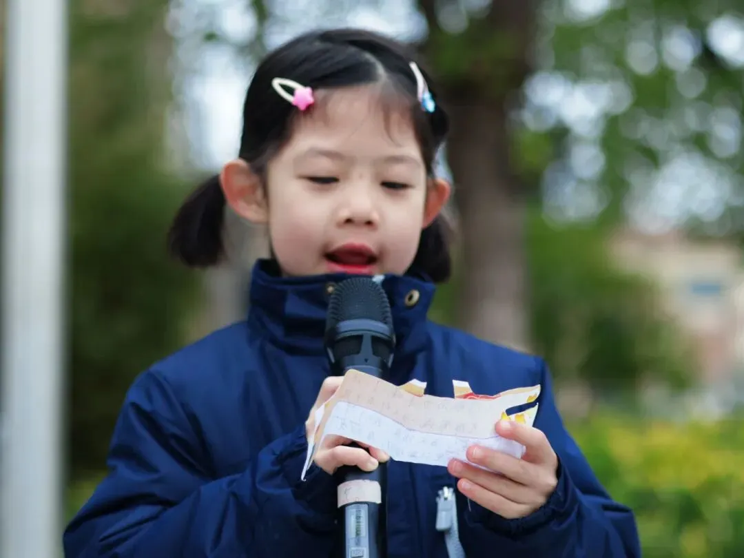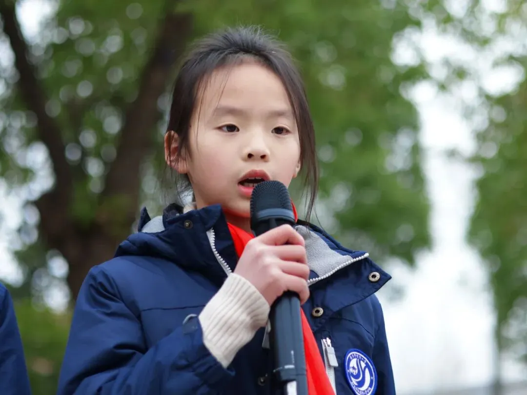 “我们是校园的小主人,是会发光的萤火虫。”在爱校倡议环节,主持人带领全体同学宣读《萤火寻美·爱校成长倡议书》。从发现美、参与美,到守护美、创造美,五条倡议如五束光,指引孩子们在新学期中文明成长、勇敢前行。