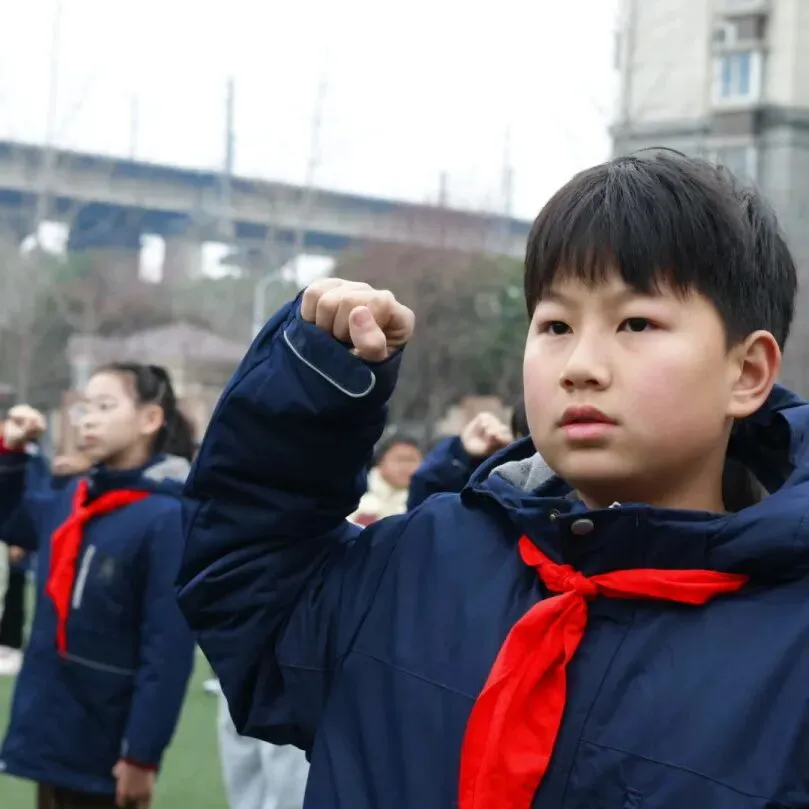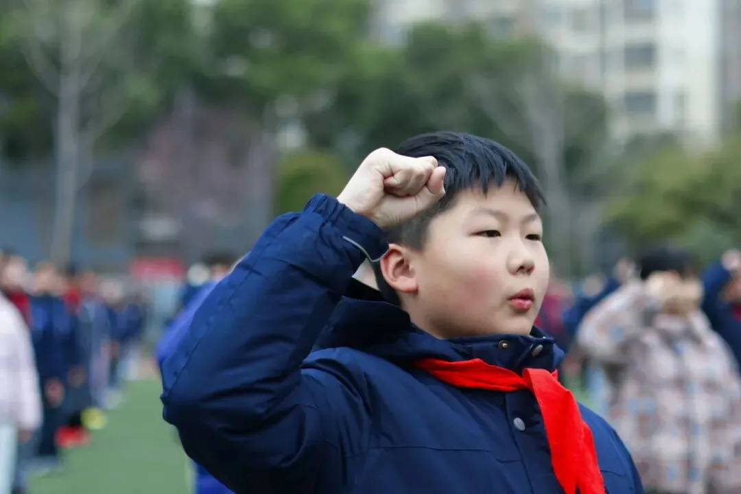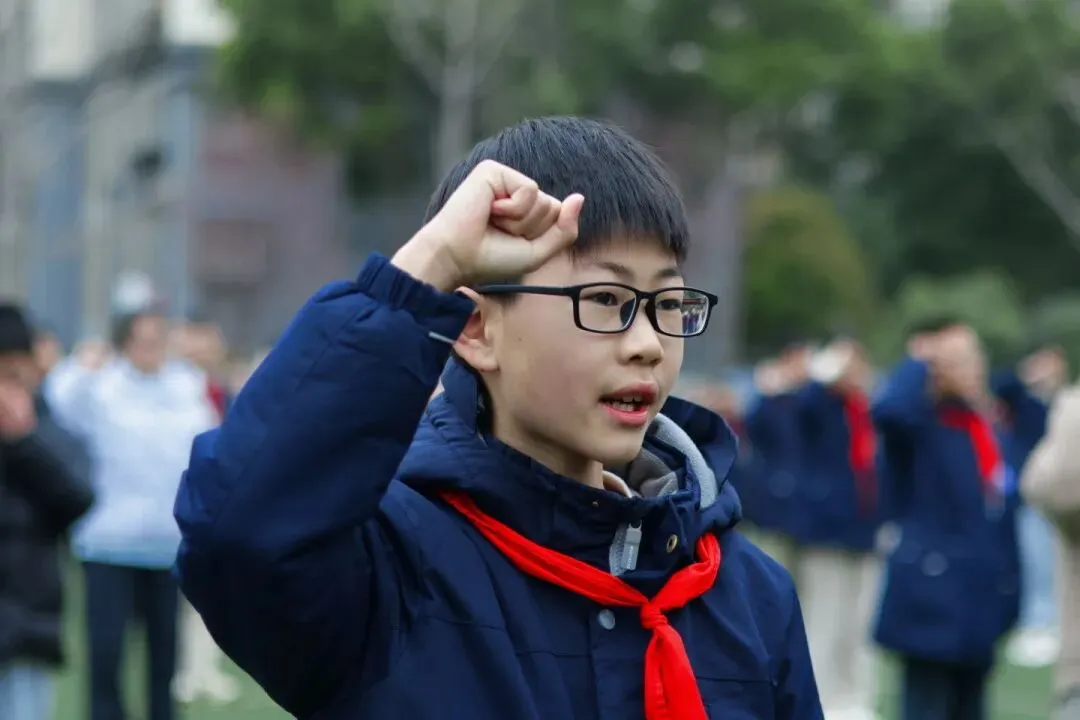 全体同学举起右拳,庄严宣誓:“我是萤火少年,发现校园之美,守护校园之美,争做校园主人,微光汇聚,点亮校园!”誓言铿锵,回荡在校园上空。