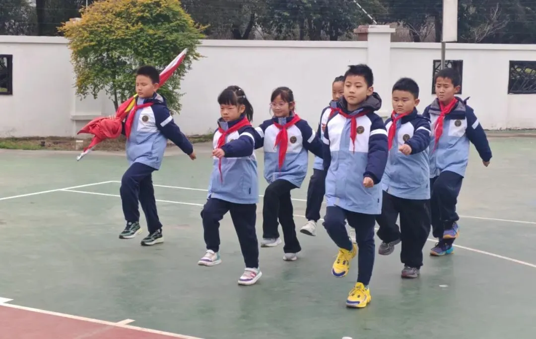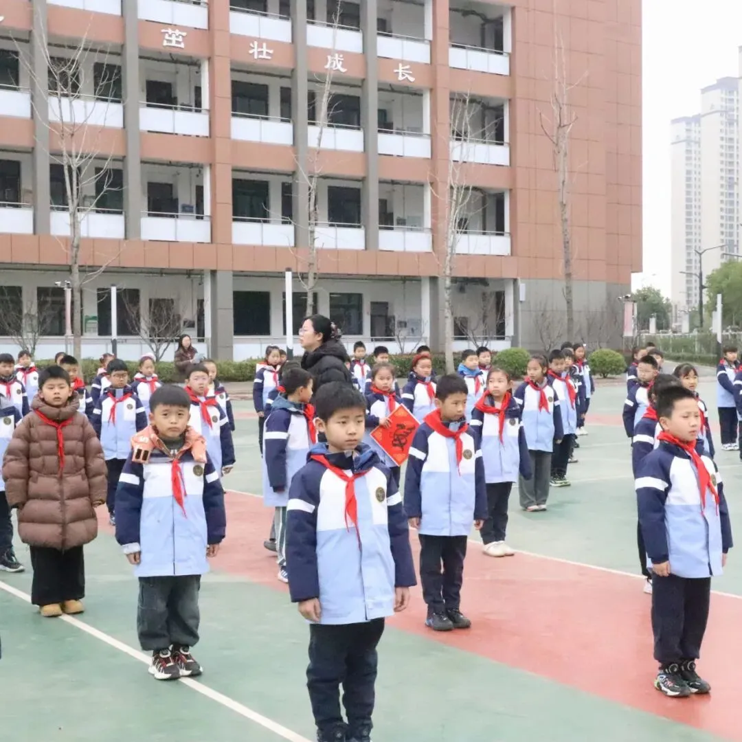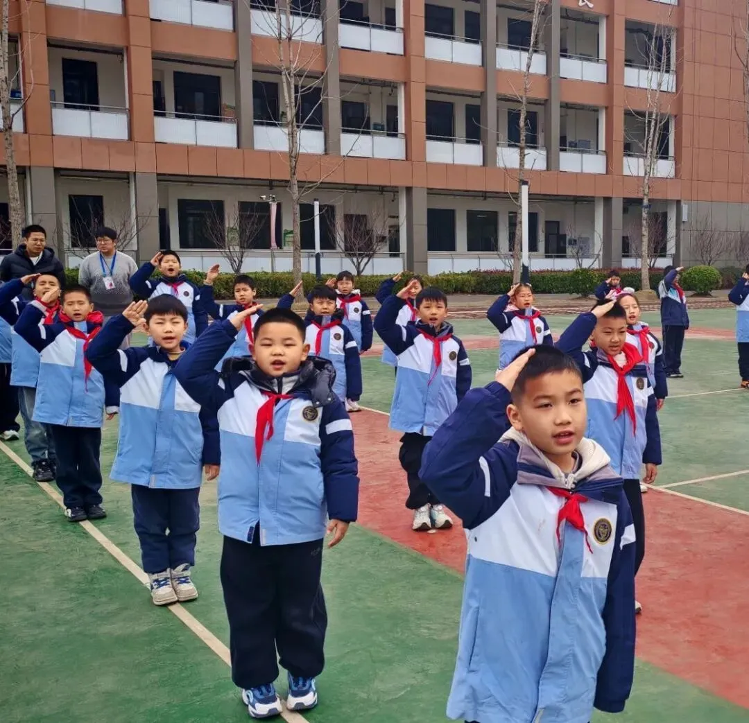 护旗队迈着铿锵有力的步伐出旗,全体师生庄严肃立,行注目礼。嘹亮的国歌声响彻校园,五星红旗冉冉升起,在蔚蓝的天空下猎猎作响,点燃了每一个人心中的爱国情怀与奋斗热情。