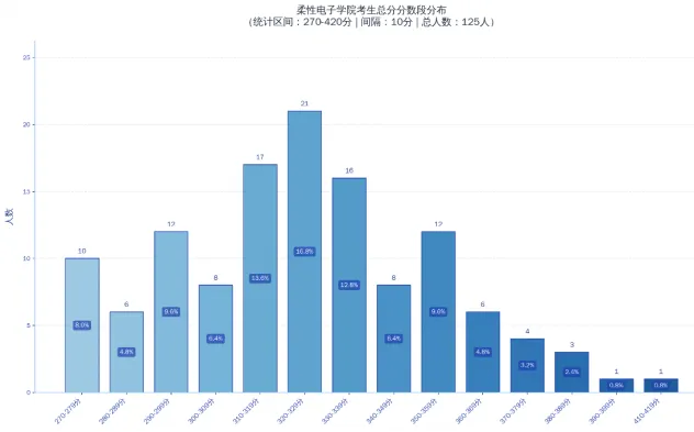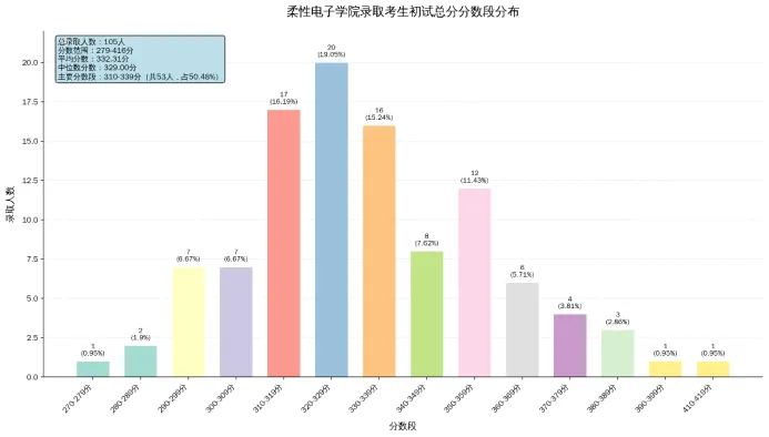 由上两图对比可知,310-339 分区间是考生的主要集中区域,共有 54 人,300分以上复试仅刷1人;300分以下复试刷人较多,共刷掉18人,低分进入复试的同学要更加注意复试的表现,以免被刷。