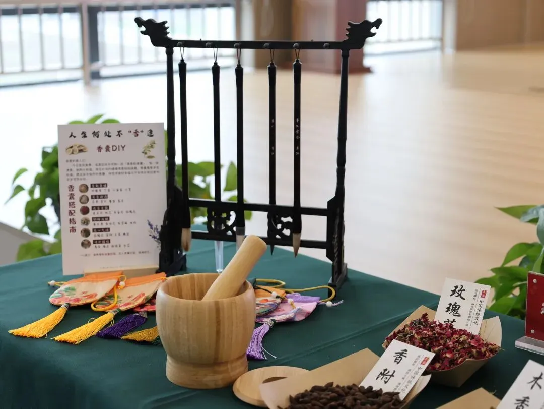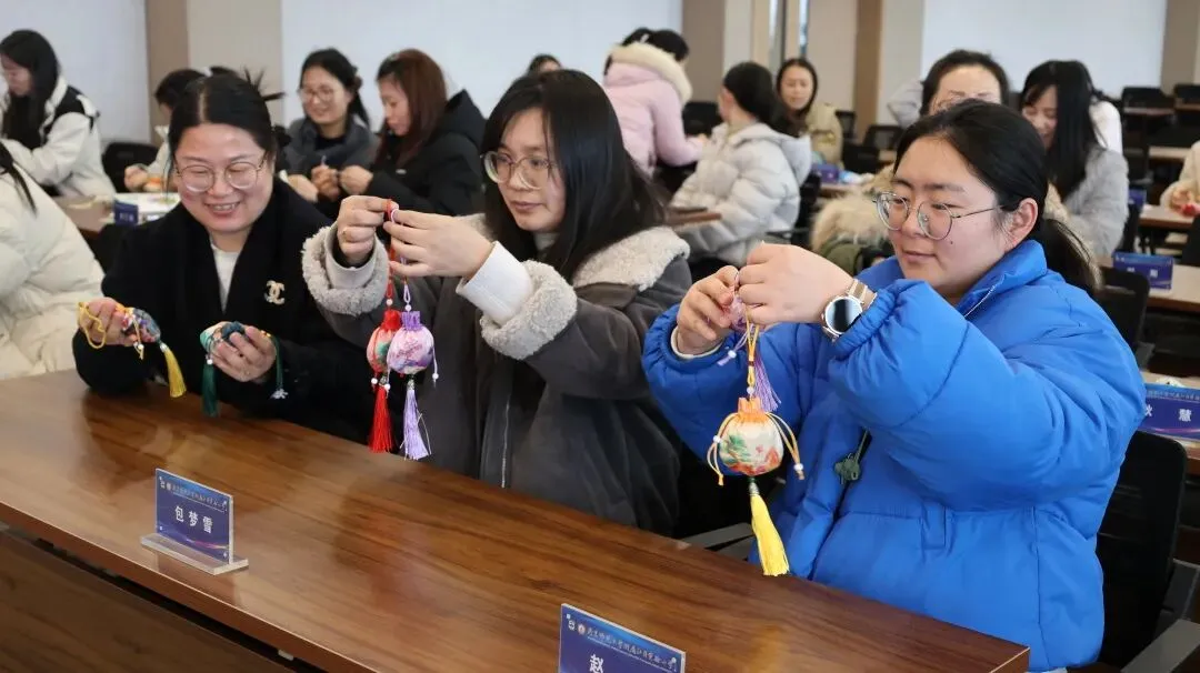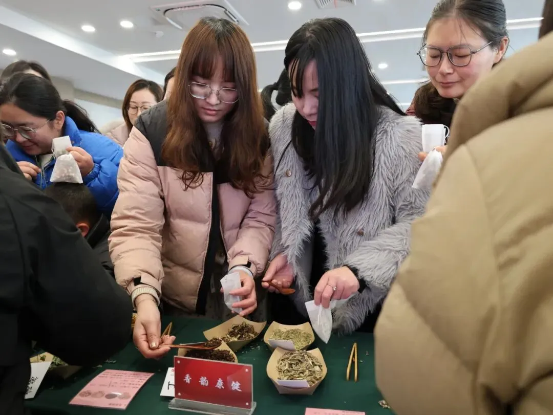 女教职工们捻取艾草、薄荷、陈皮等天然药材,亲手调配香气、填充囊袋,将对生活的热爱与对教育的赤诚,尽数融入每一枚独一无二的香囊。缕缕药香萦绕鼻尖,欢声笑语回荡耳畔,大家在沉浸式体验中感受中华传统医药文化的独特魅力,在指尖互动中舒缓工作压力、增进同事情谊,定格下温馨美好的瞬间。