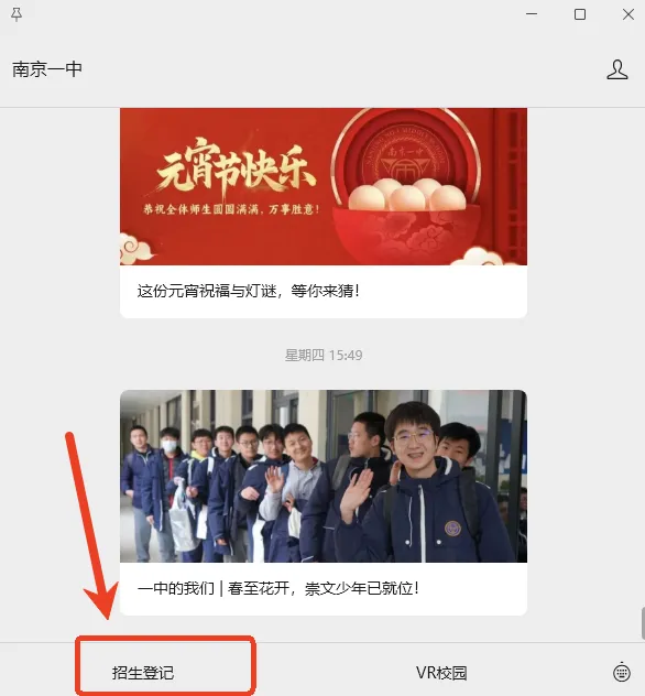 南京一中的登记入口为【南京一中】公众号信息界面左下角—【招生登记】—【信息登记】,大家可以进入并填写信息啦。
