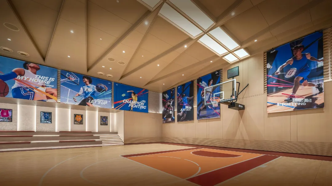 约7米净高篮球场,搭配专业减震地胶与夜间LED防眩光灯光系统,保障运动的安全性与舒适性。