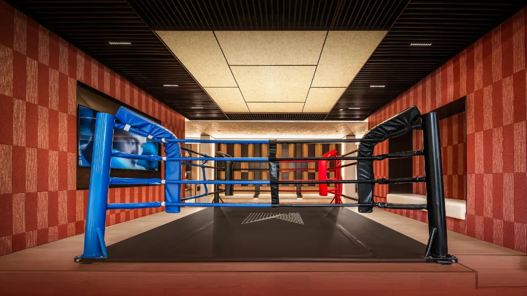专业搏击区通过安全围绳设计,打造压力释放的能量场。