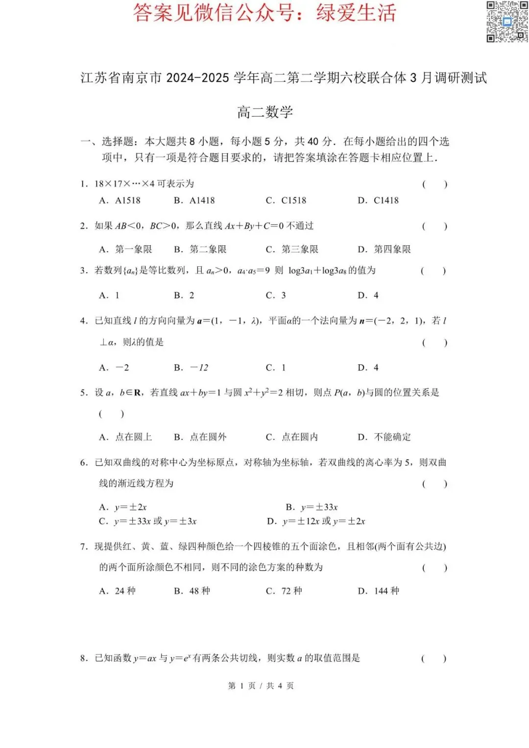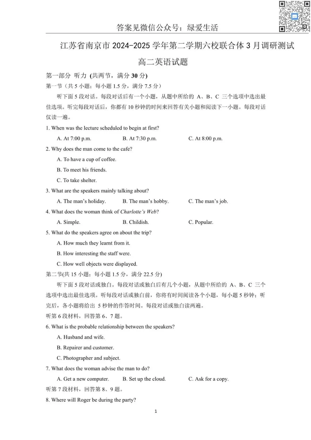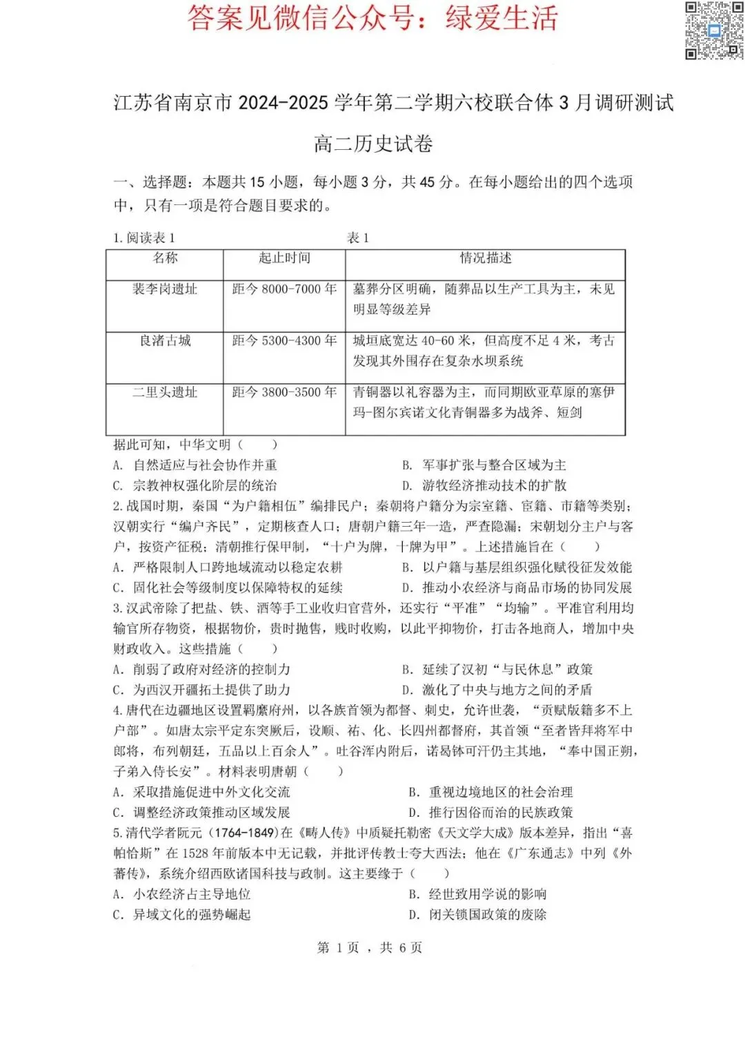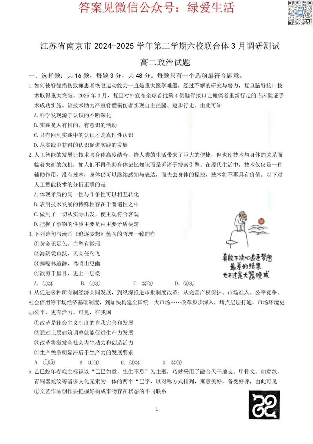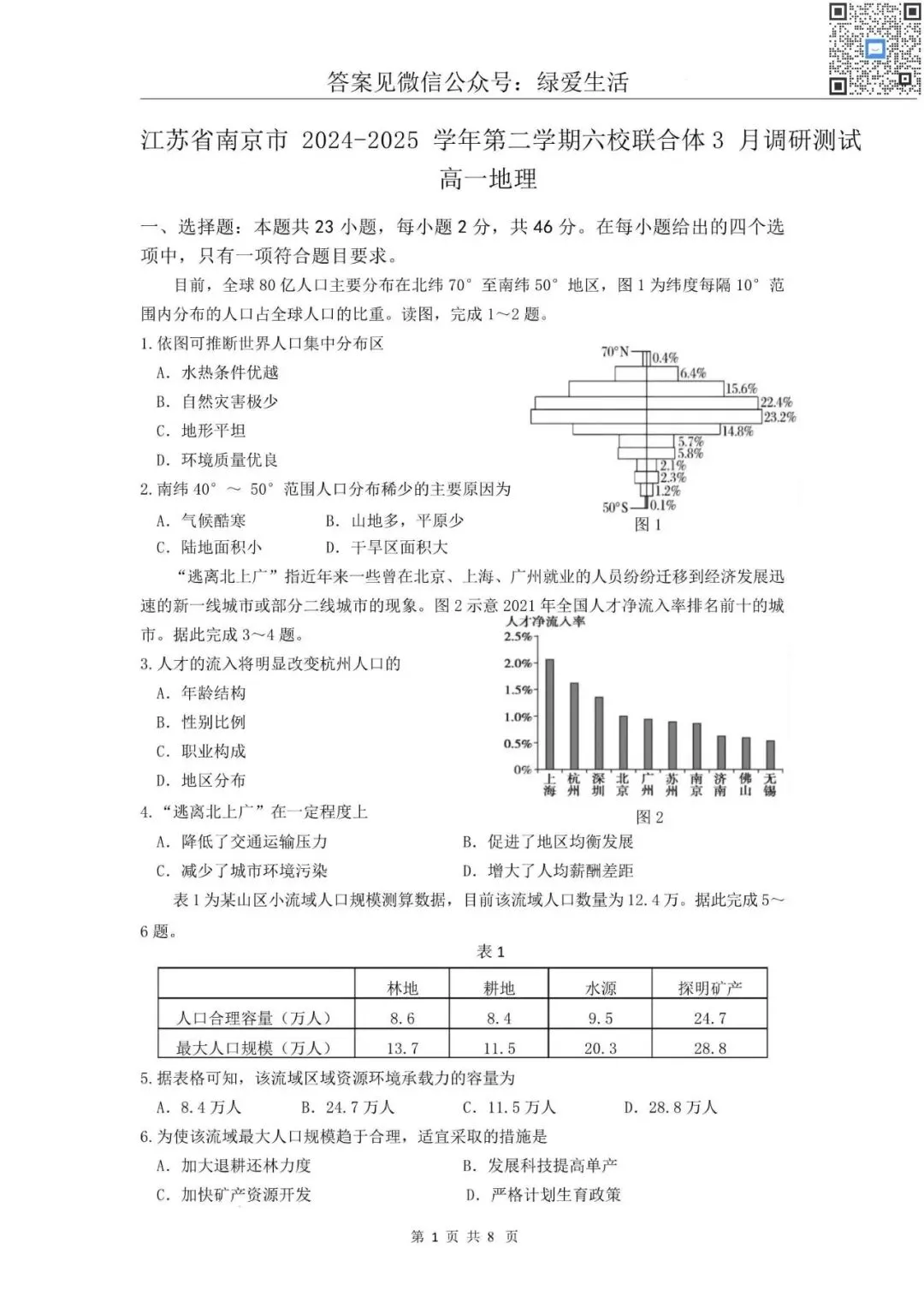 南京六校联合体2024-2025学年高一下学期3月调研测试试卷优点介绍