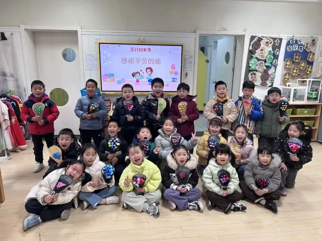 孩子们自信地举起自己的作品,脸上各个洋溢着自豪与喜悦。通过这次活动,孩子们不仅锻炼了动手能力,更在心中种下了感恩的种子,学会了用温暖的方式向身边的女性长辈表达爱意,度过了一个有意义的妇女节。