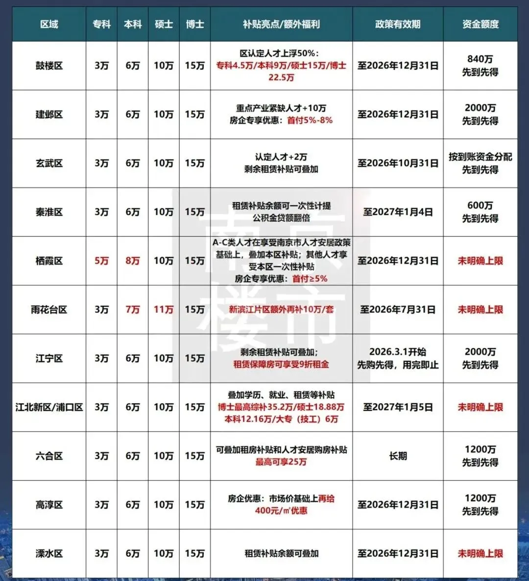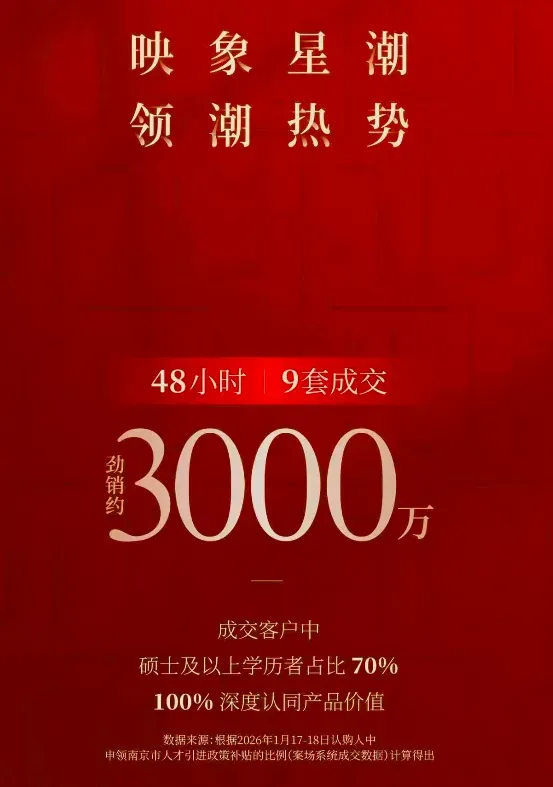 二、房票新政生猛!江宁2000万额度3天被抢光,大批新房卖爆了今年南京一开年就放大招,各区人才新政补贴力度超大,成功让大批观望的买房人直接出手。尤其江宁区年后出细则,一共2000万额度,竟3天就被领光。不少楼盘也接住这波泼天富贵。江宁南站板块的红盘映秦淮,叠加市区项目三重利好,最高能有29万元的学历补贴,新政后喜报不断,最快1天就成交。