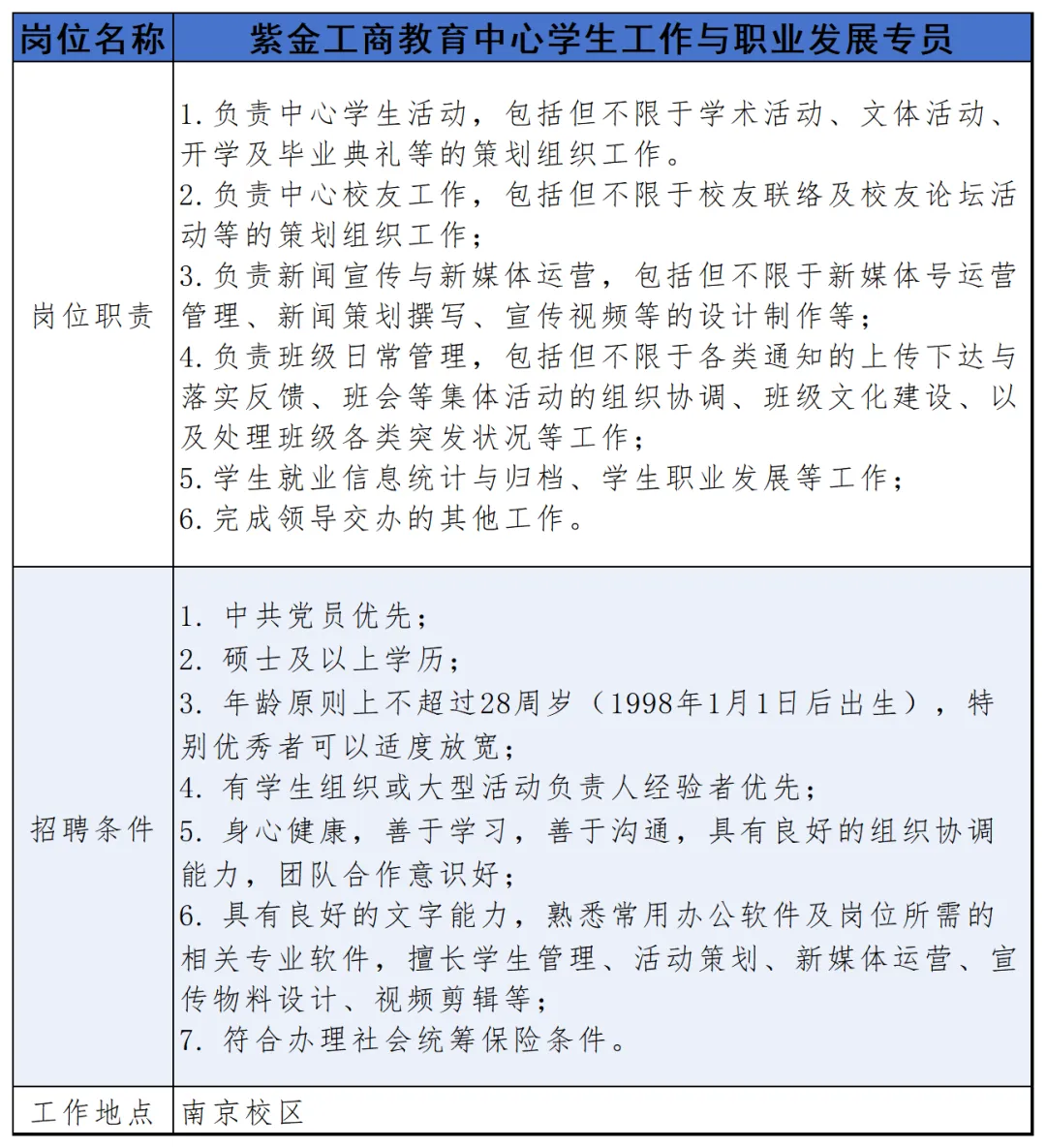 南京理工大学经济管理学院紫金工商教育中心负责此次招聘的问题咨询。