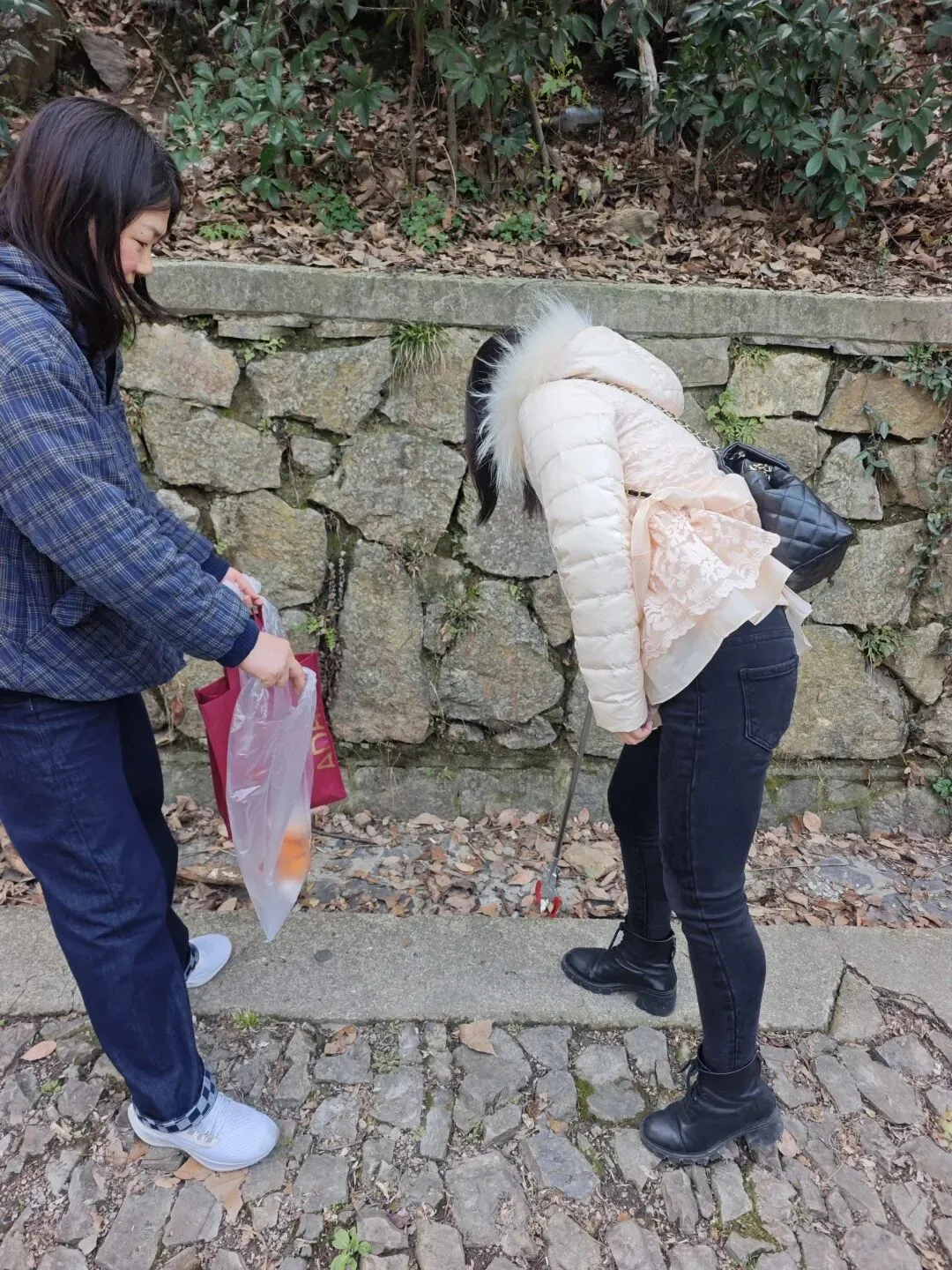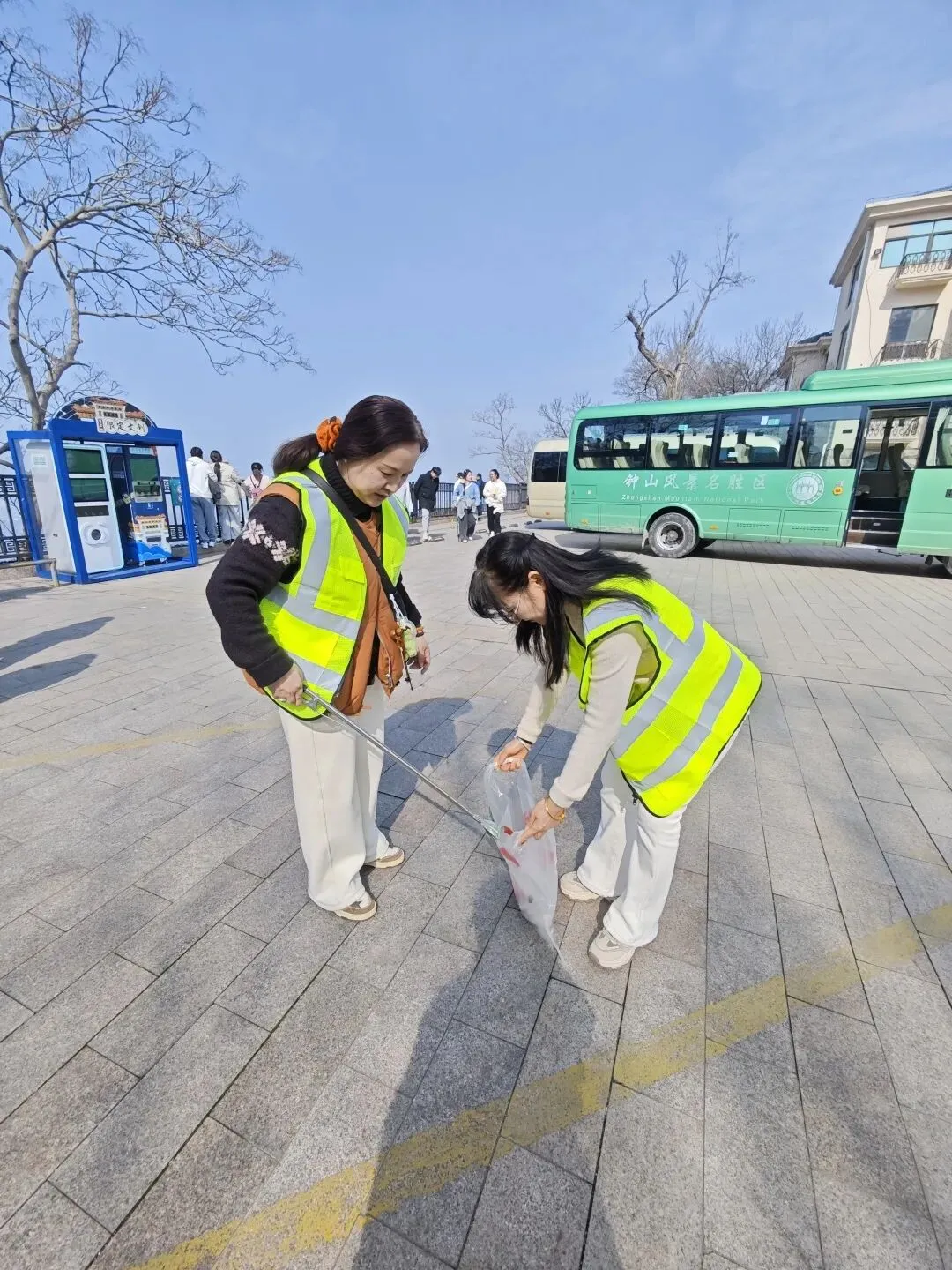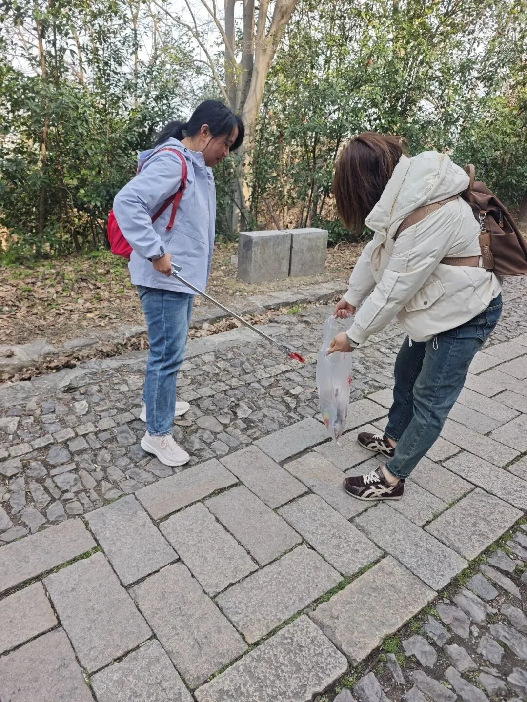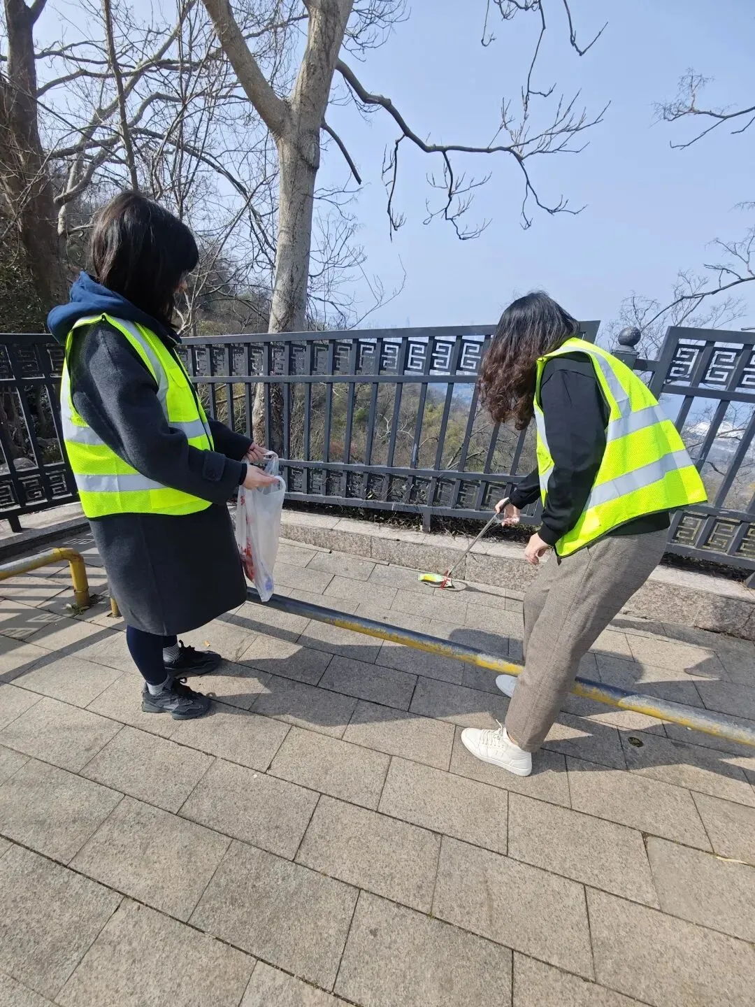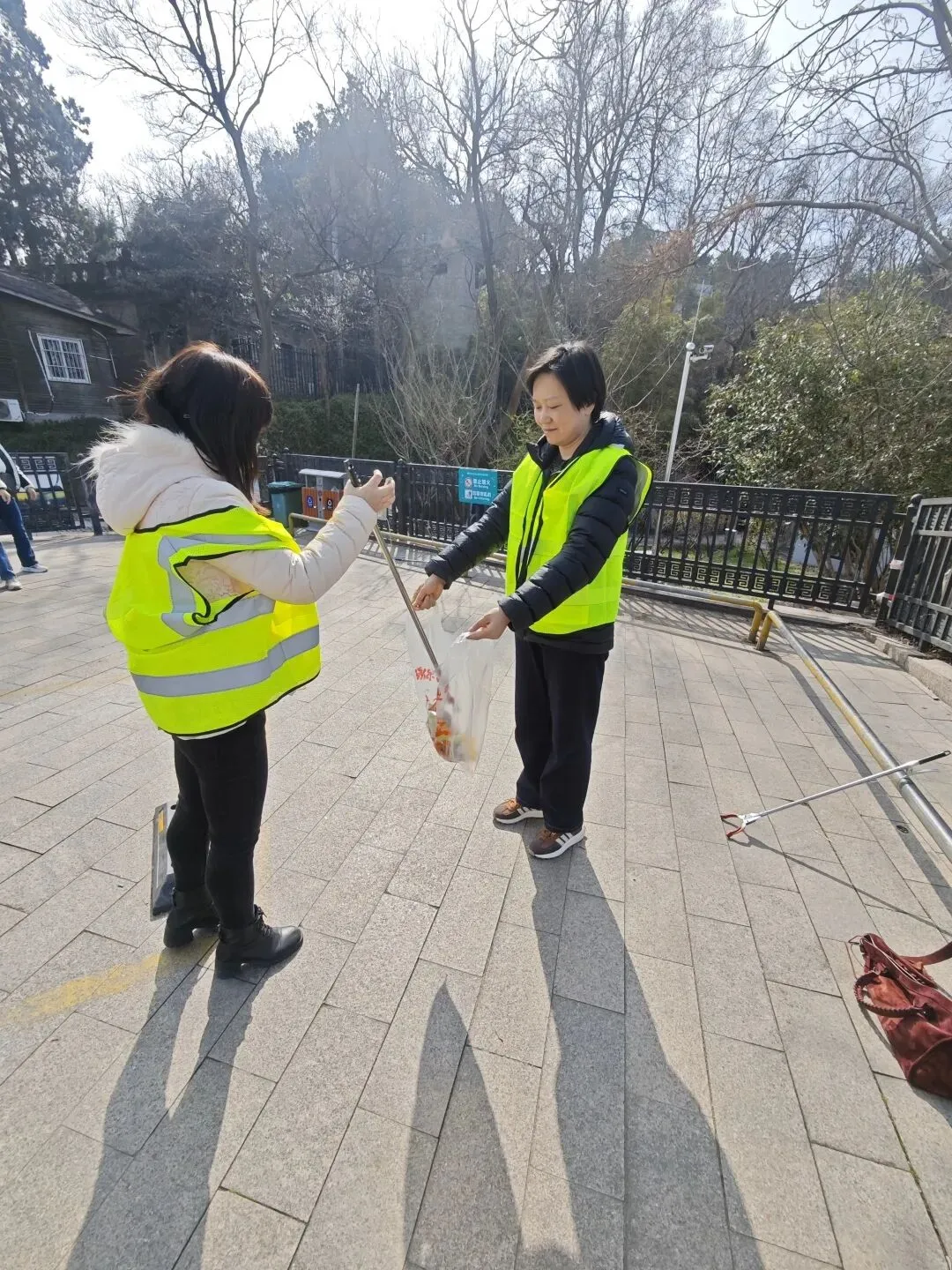上午8时30分,大家准时在太平门白马公园广场集结。领队送上温馨的节日祝福后,女员工们领取手套、垃圾夹和垃圾袋,整装待发。迎着春日暖阳,“南京苏商环保临时小队”沿着白马公园至紫金山天文台的路线拾级而上。大家一边欣赏山间春色,感受春风拂面,一边化身环保志愿者,认真清理山路两侧的烟头、纸屑、塑料瓶等各类垃圾,不放过任何一个卫生死角,用实际行动为紫金山的绿水青山增添一抹亮色