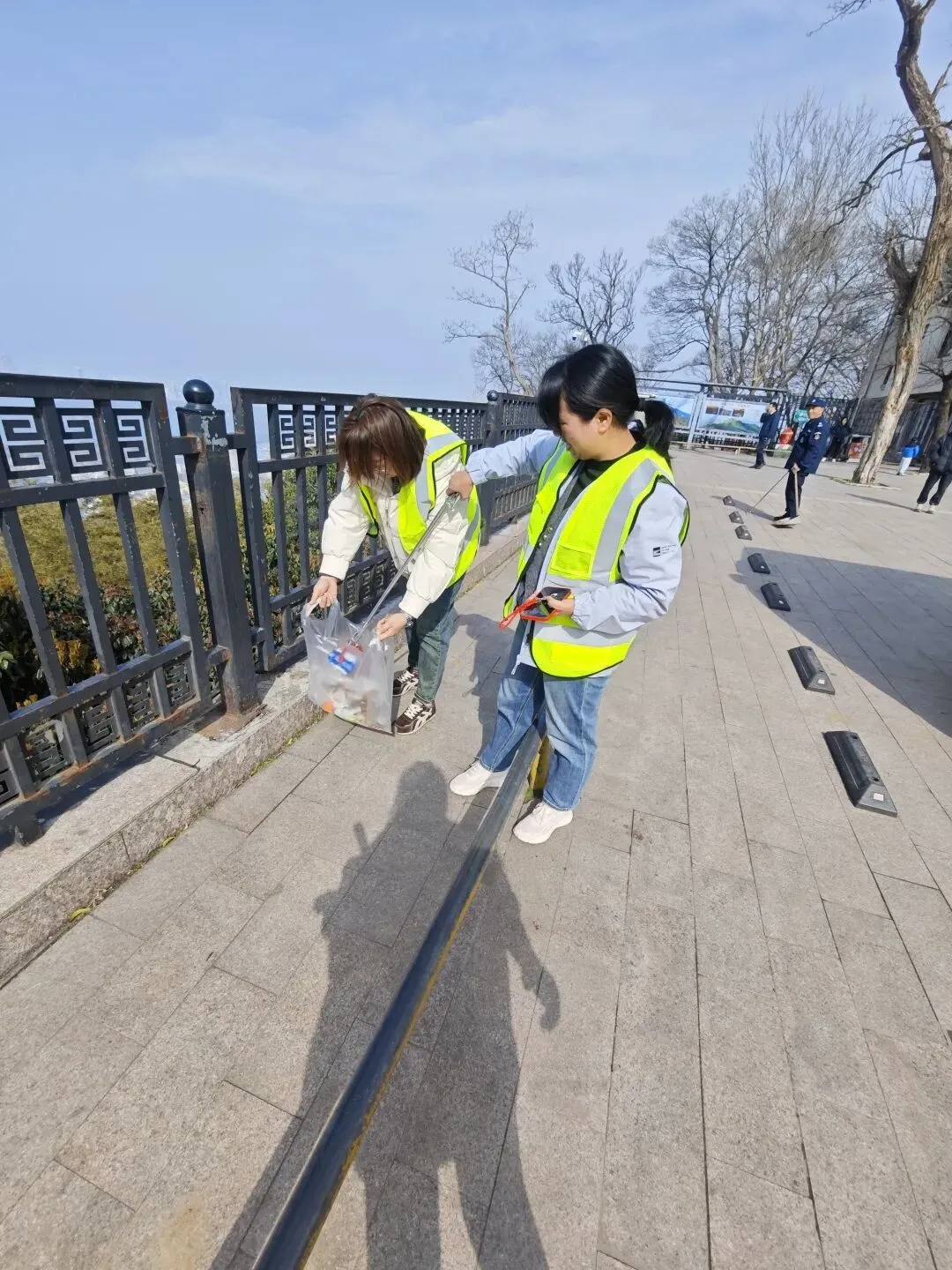登山途中,女员工们相互鼓励、分工协作,欢声笑语此起彼伏,成为山林间一道靓眼的风景线。抵达紫金山天文台后,大家稍作休憩,自由交流,尽情享受春日登高的惬意时光。合影留念后,集体沿原路下山,依然不忘活动初衷,继续沿途清理垃圾,并将捡拾的垃圾集中分类,有序投入指定垃圾桶,践行绿色环保理念。