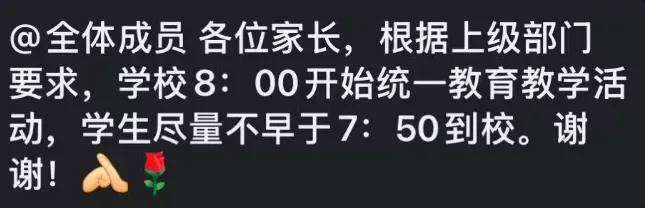 多所中小学也官宣,不得早于8点到校,包括汇文、树人、鼓实、东外等头部学校。
