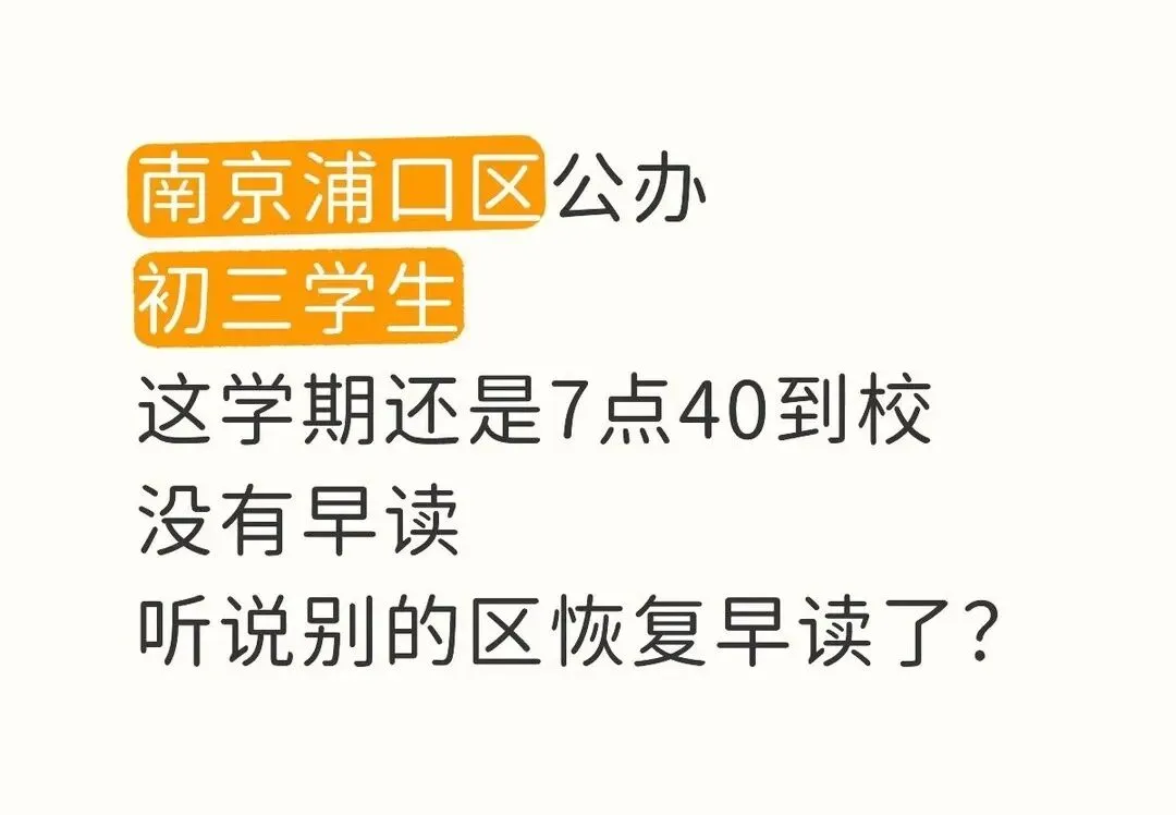 今年年初,南京市教育局发布通知,严格落实教育部通知要求,初中上午上课时间一般不早于8:00,学校不得要求学生提前到校参加统一的教育教学活动。