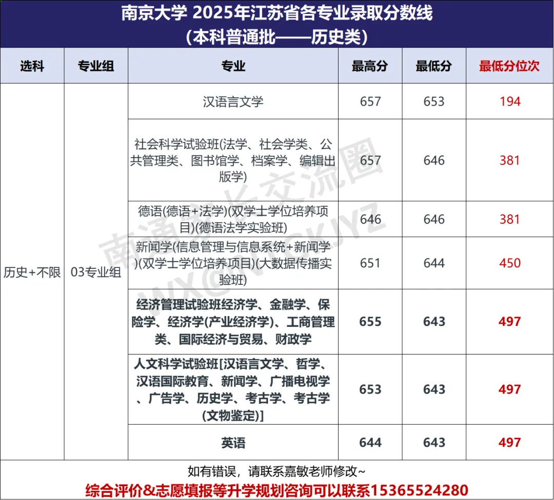 >南京大学2025年江苏省各专业录取分数